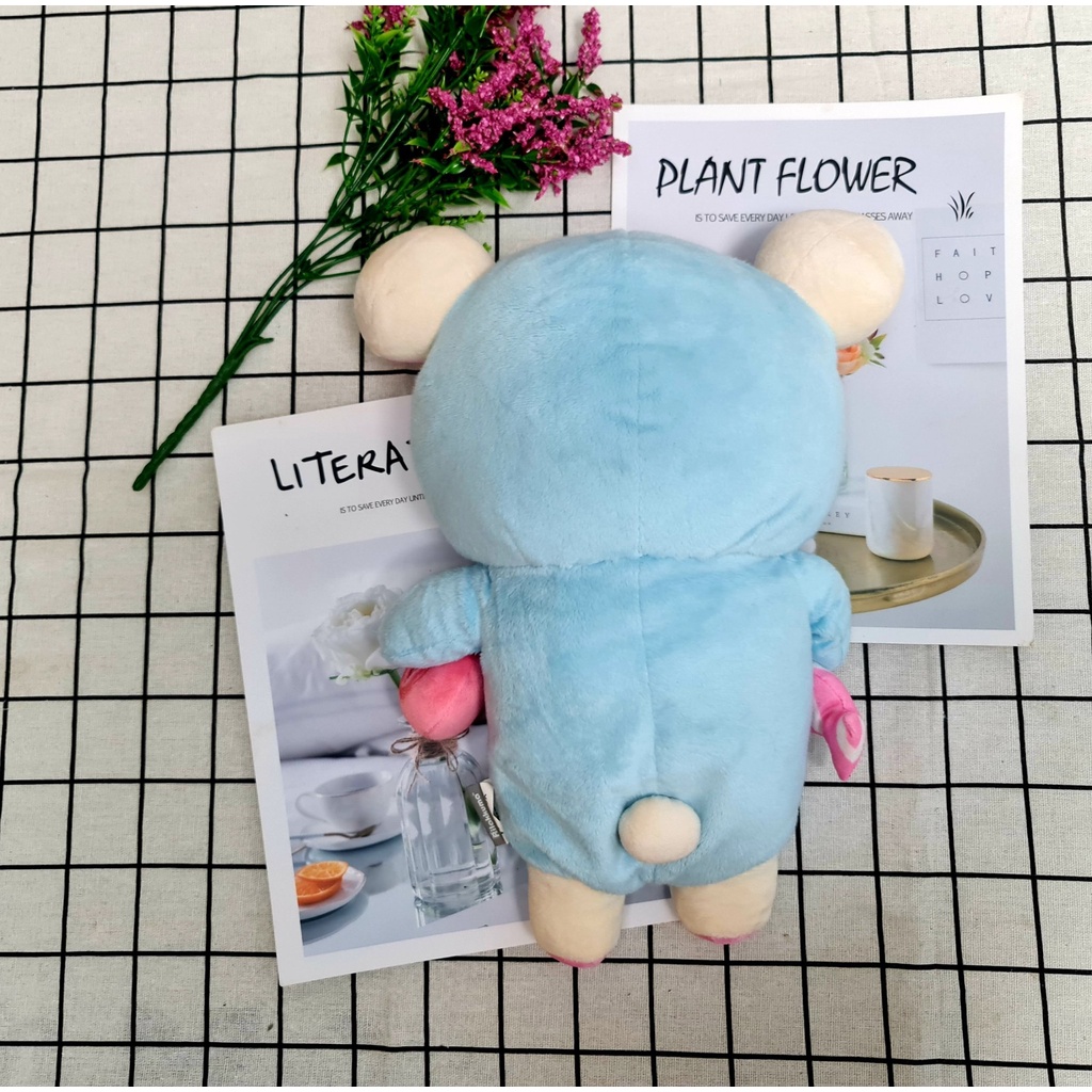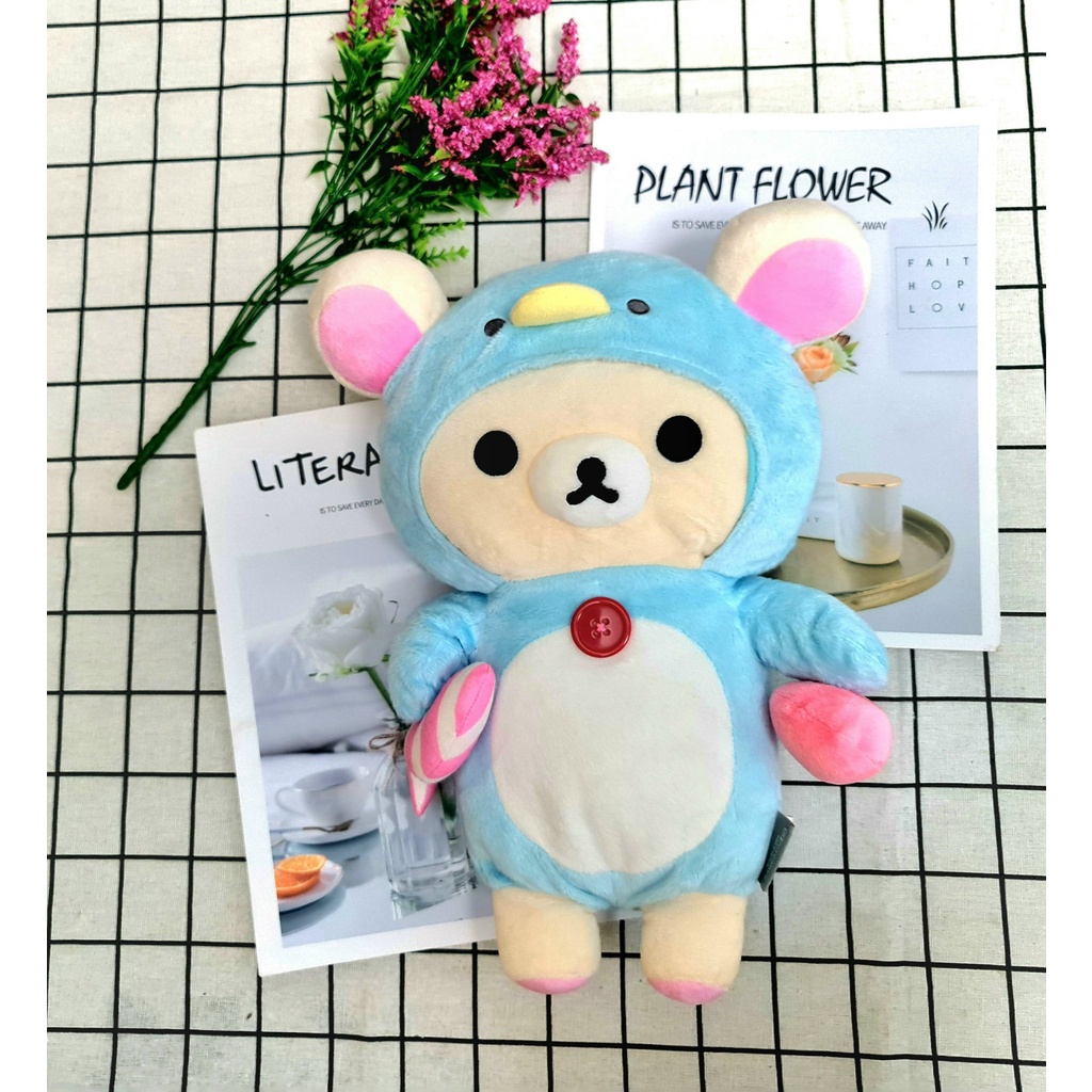 Rila Rilakkuma Korikkuma teddy bear with many cosplay models wearing clothes