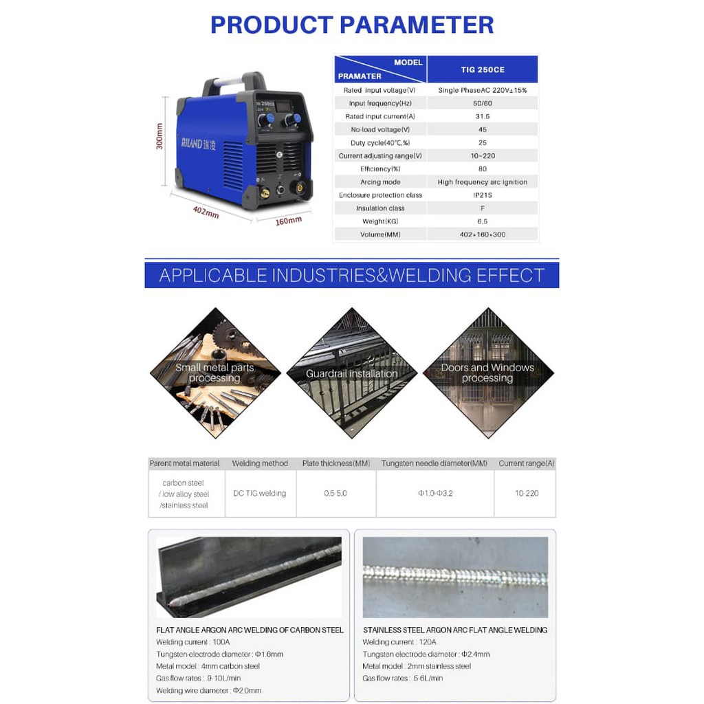 Riland TIG-250CE Welding Machine Complete Set (2 Years Warranty)