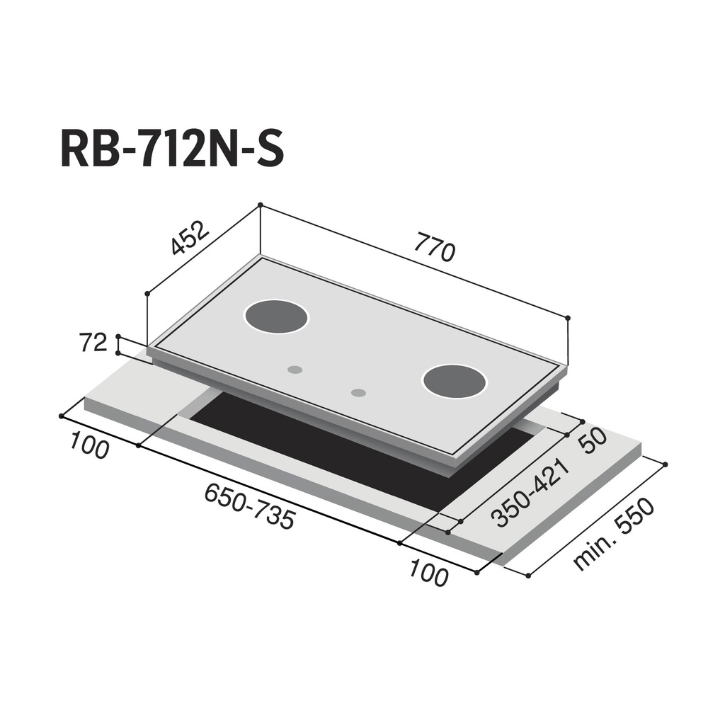 Rinnai RB-712N-S 2 Burner Built-in Stainless-Steel Cooker Hob / Kitchen Gas Stove / RB712NS