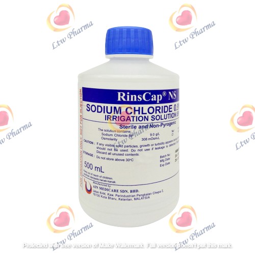 Rinscap NS Normal Saline Sodium Chloride 0.9% Irrigation Solution 500mL / 1L (Exp:1/25)