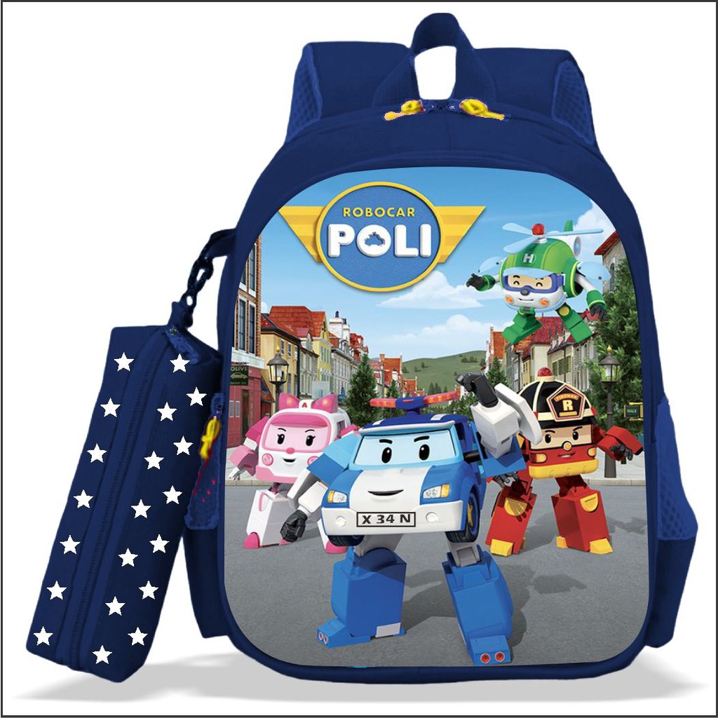 5-in-1 Package of Premium ROBOCAR Character School Backpacks for Boys for Kindergarten and Elementary School
