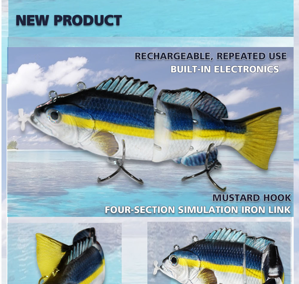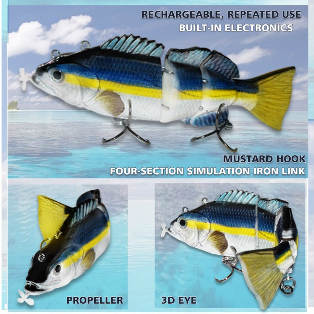 Robotic Fishing Lure Hard Bait Auto Electric Swimming Lures Wobblers 4-Segement Propeller Powered Swimbait USB Rechargeable