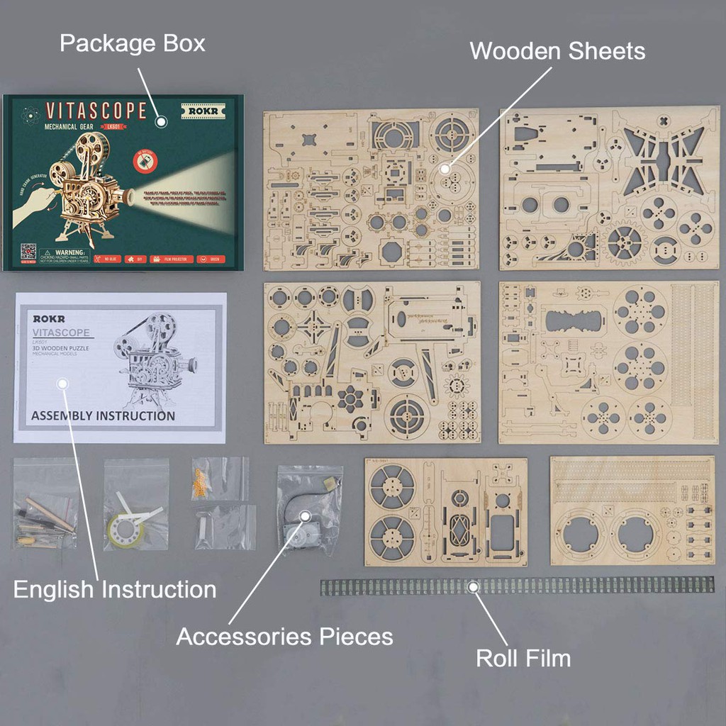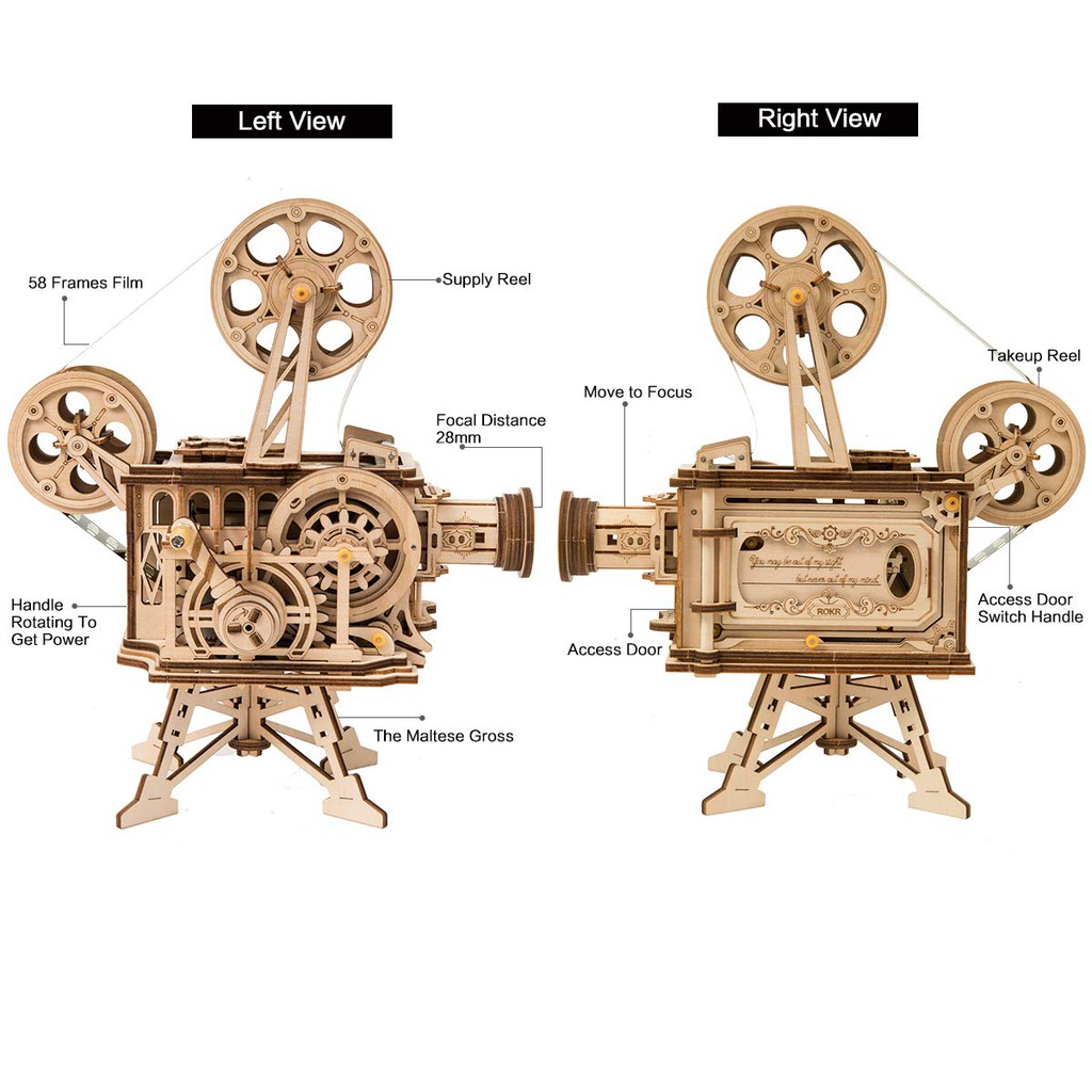 Raya Sales | Robotime Rokr Vitascope Movie Projector 3D Wooden Puzzle (LK601) Movement Assembled Puzzle