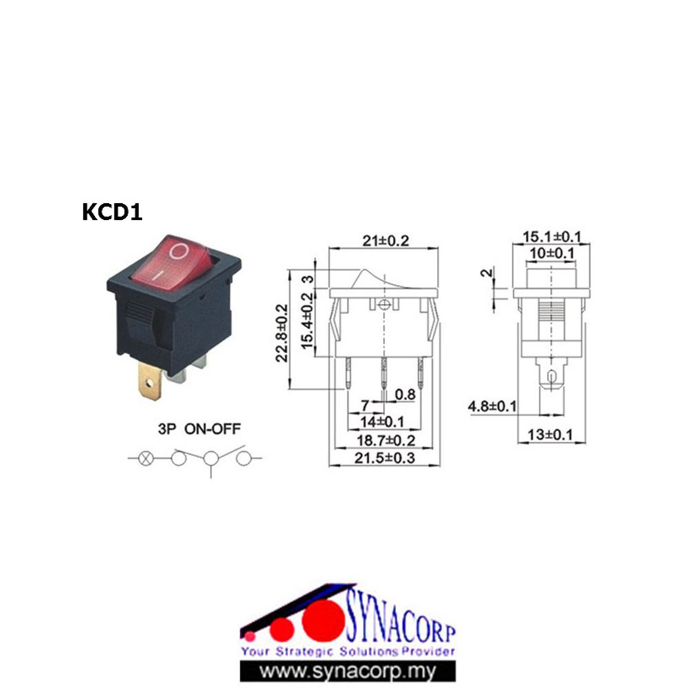 Rocker Switch 3-pins On/Off with light KCD1