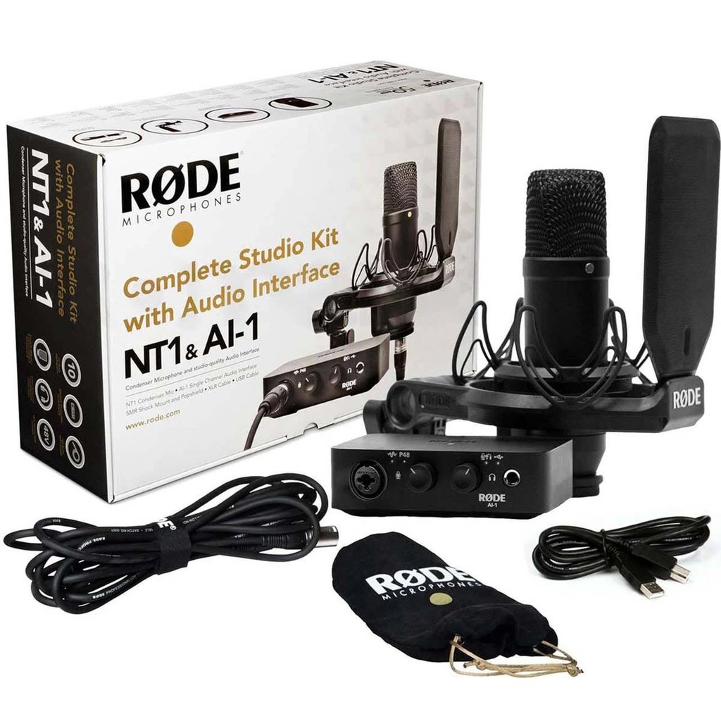 Rode Complete Studio Kit with AI-1 Audio Interface, NT1 Microphone, SMR Shockmount, and Cables