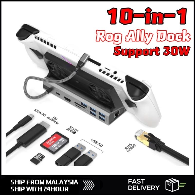 Rog Ally x 10-in-1 Dock Support 30w Turbo Mode 100w PD Charge 4K 60hz Docking Station for Rog Ally