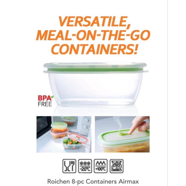 Roichen Airmax Microwavable Freezer Safe Food Container - 1 set Full Set or Choose Size