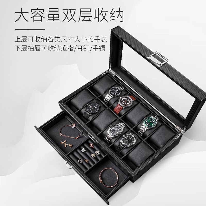 Roll & Rotate Carbon Fiber Leather Watch Jewelry Storage Box Multifunctional Jewelry Ring Bracelet Display Watch Box