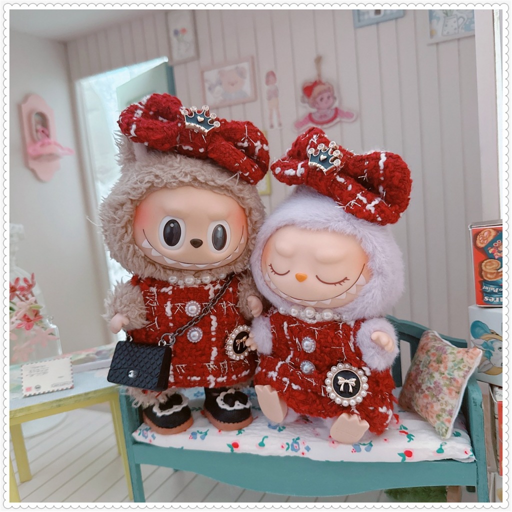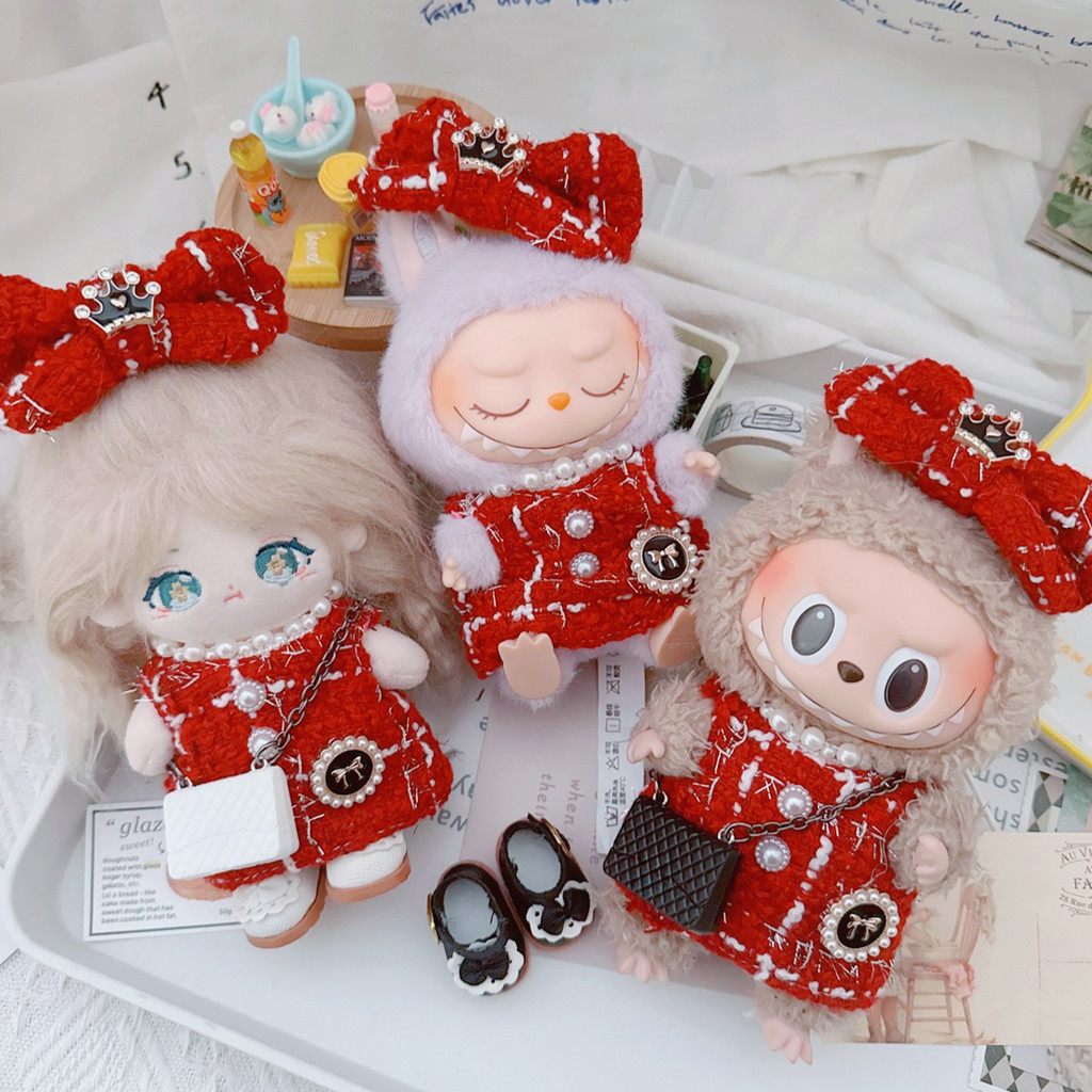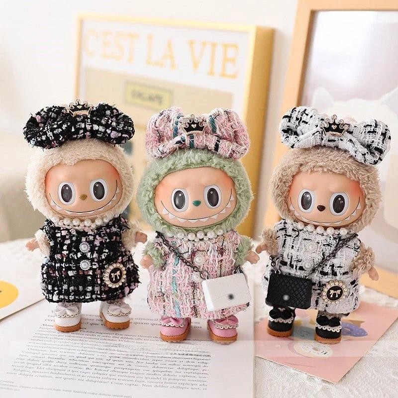 Ropa Labubu 17cm Doll Stylish Overalls Clothes Set Pendant Cute Clothes with Fragrant Style For V1/V2 Labubu