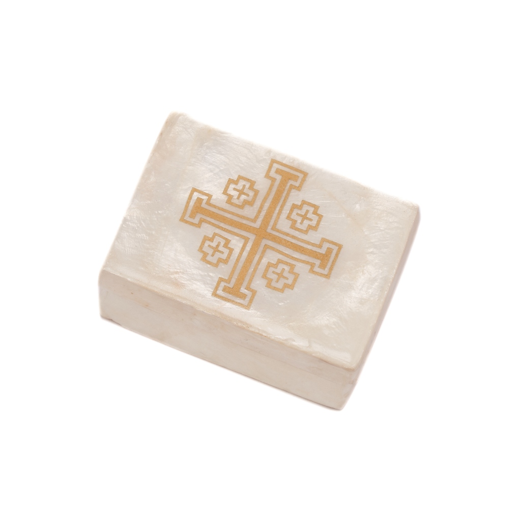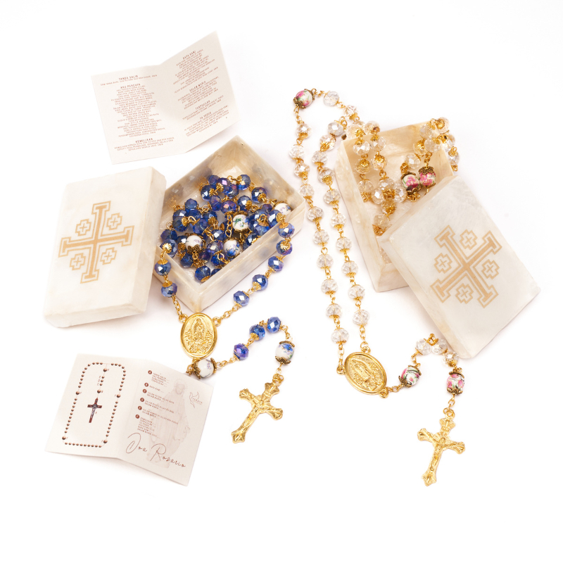 Rosary Glass Pearl Box Sea Shell White Handmade 5 x 7cm + Rosary Prayer Sheet Souvenir Spiritual Accessories