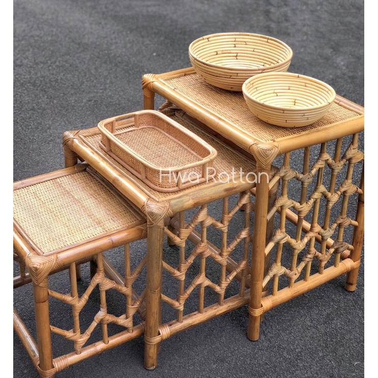 Rotan wicker small table square bedside table chill balcony indoor outdoor table / Meja kecil rotan anyaman segi empat