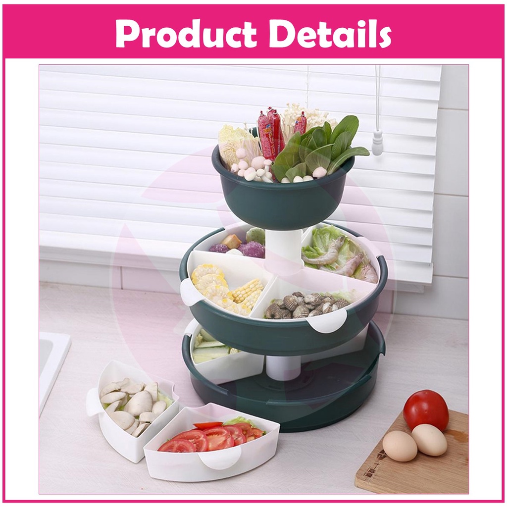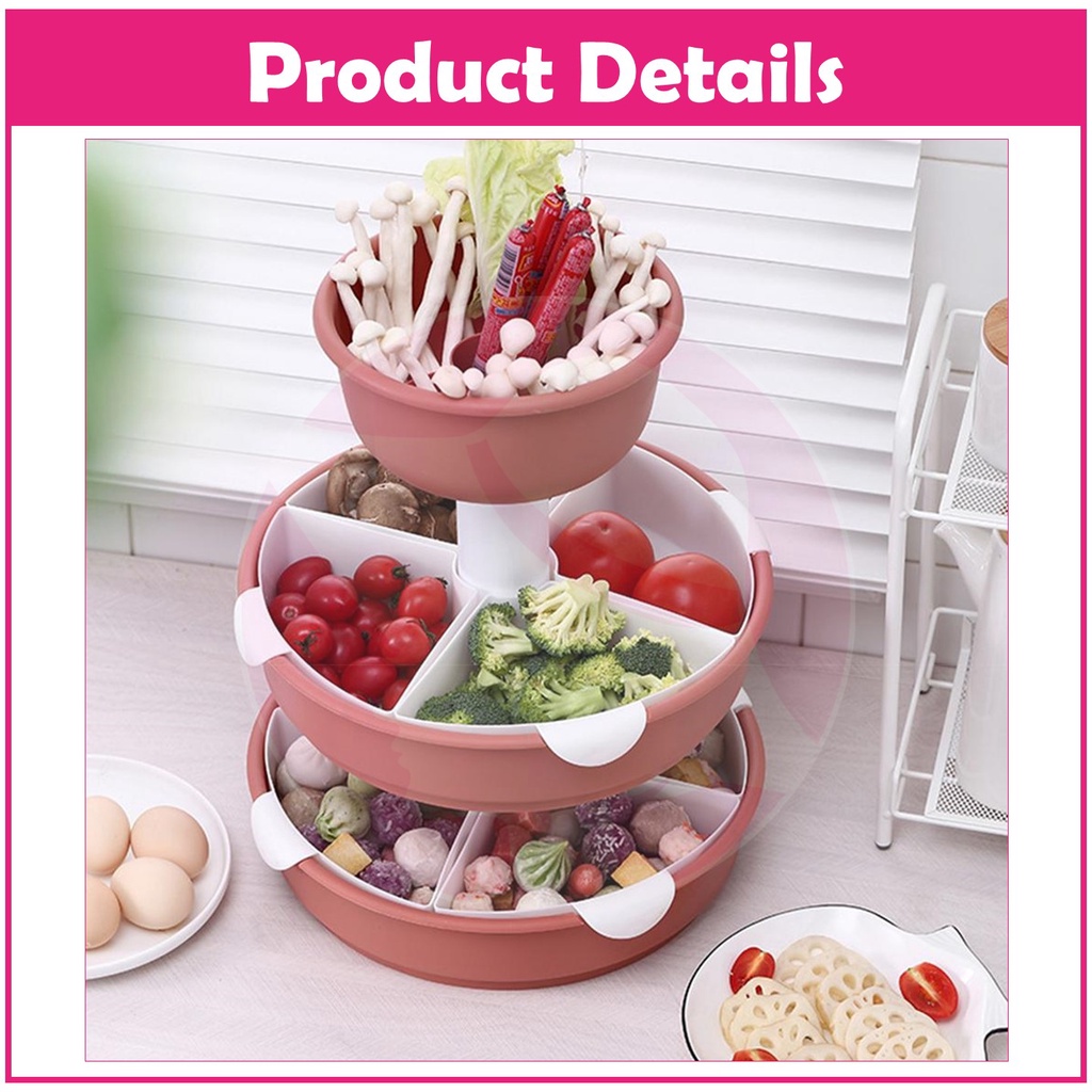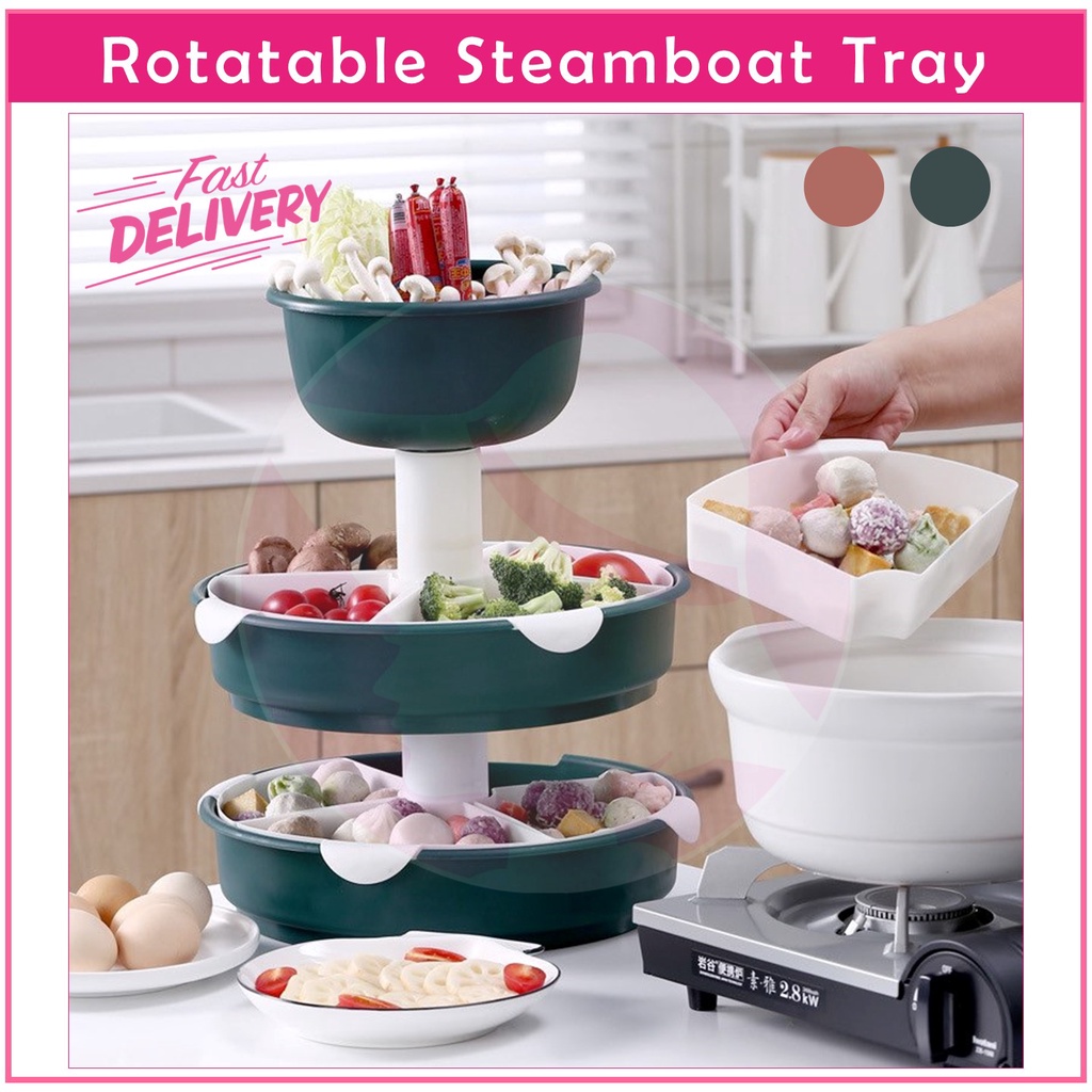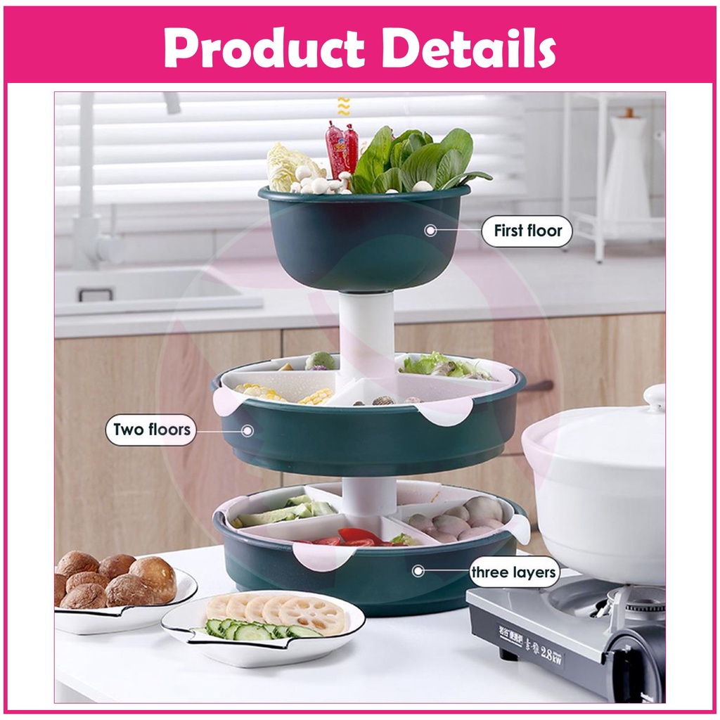 Rotatable Steamboat Hotpot Single Triple Layer Grid Storage Container Tray Drain Basket Kitchen Vegetable Bowl Drainer