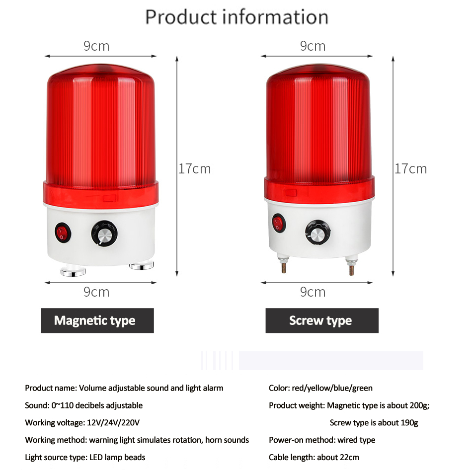 Rotating Warning Light Adjustable Volume LED Sound Light Integrated Warning Light 220V24V12V