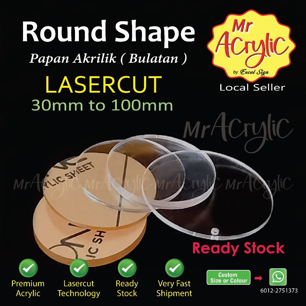 Round Acrylic, Keychain 30mm to 100mm, [READY STOCK] Clear Acrylic, Akrilik Bulatan, Circle Acrylic
