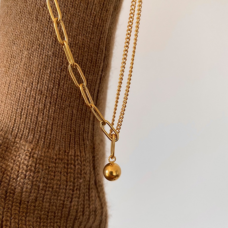 Round Beads Chain Necklace Titanium Steel No Fading Necklace Women's Simple Advanced Clavicle Chain Jewelry