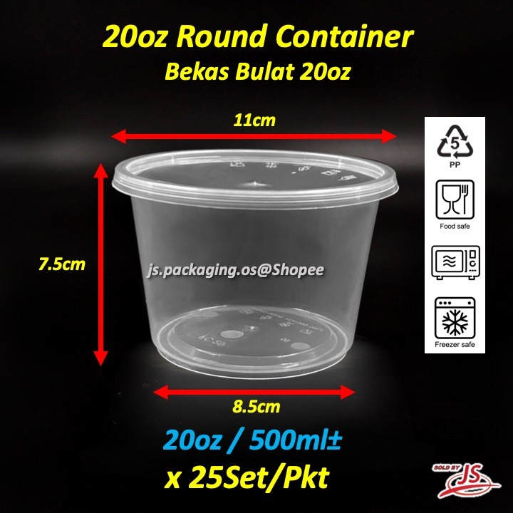 Round Container with Lid 25set Bekas Makanan Bulat 8oz/10oz/12oz/16oz/20oz/25oz/30oz/750ml/1000ml