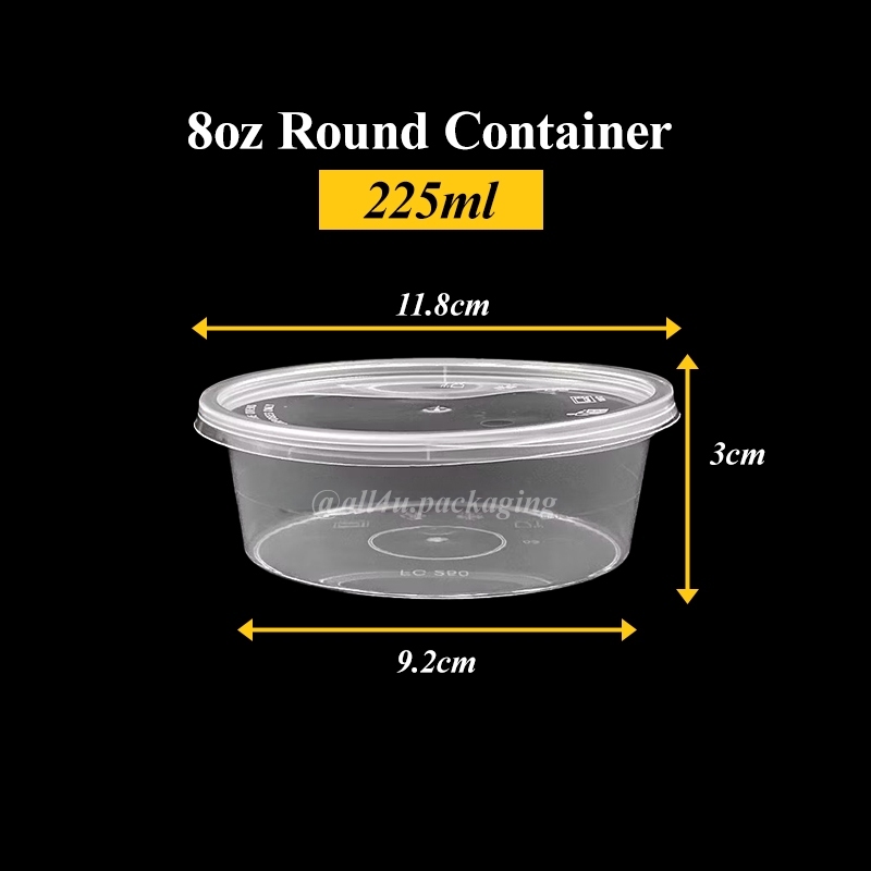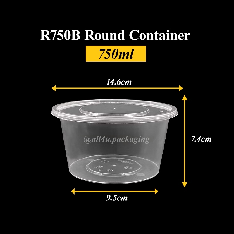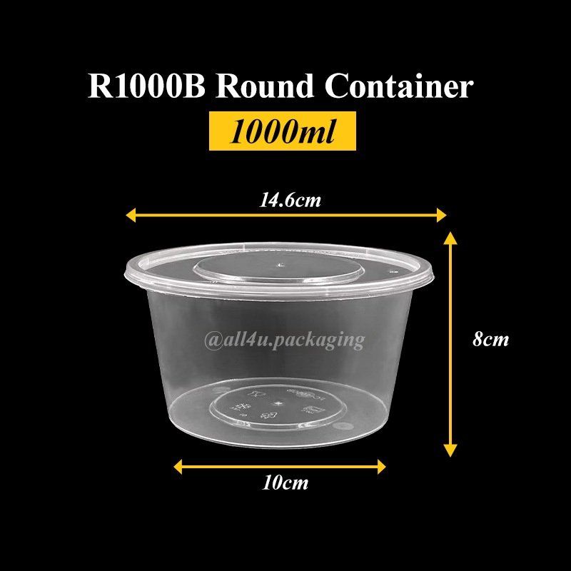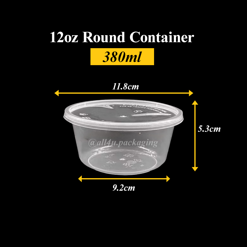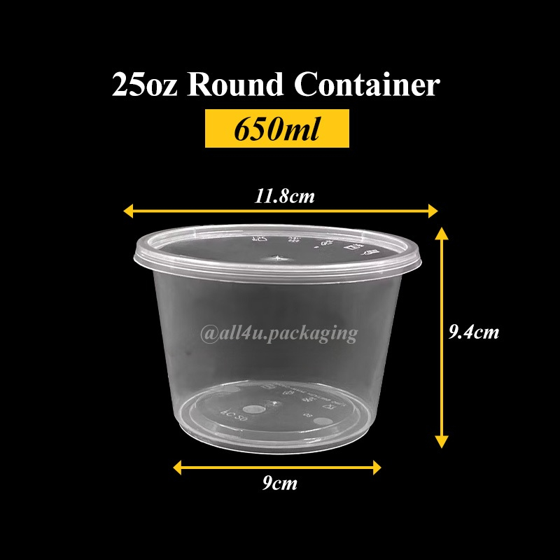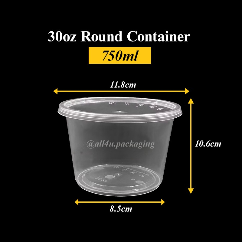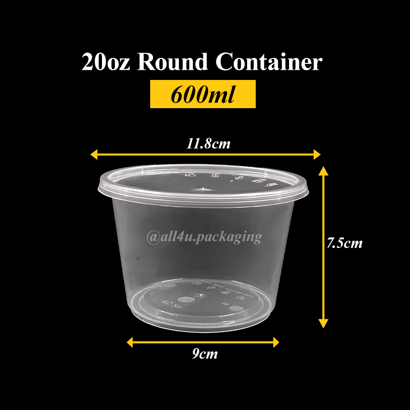 Round Container with Lid 50sets Bekas Makanan Bulat 10oz 12oz 16oz 20oz 30oz Plastic Container