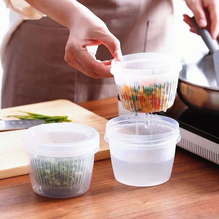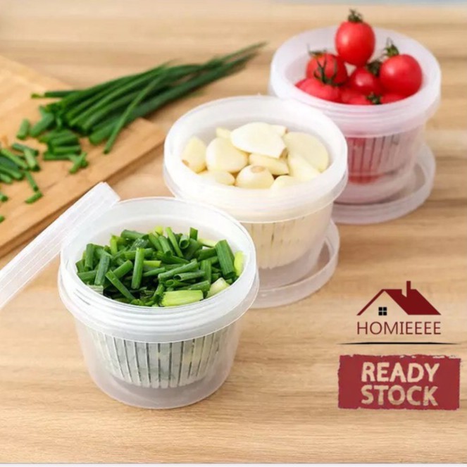 Round Drain Sealed Box 🔥Ready Stock🔥 Ginger Garlic Onion Airtight Food Container Kitchen Storage Bekas Bawang 葱姜蒜沥水保鲜盒