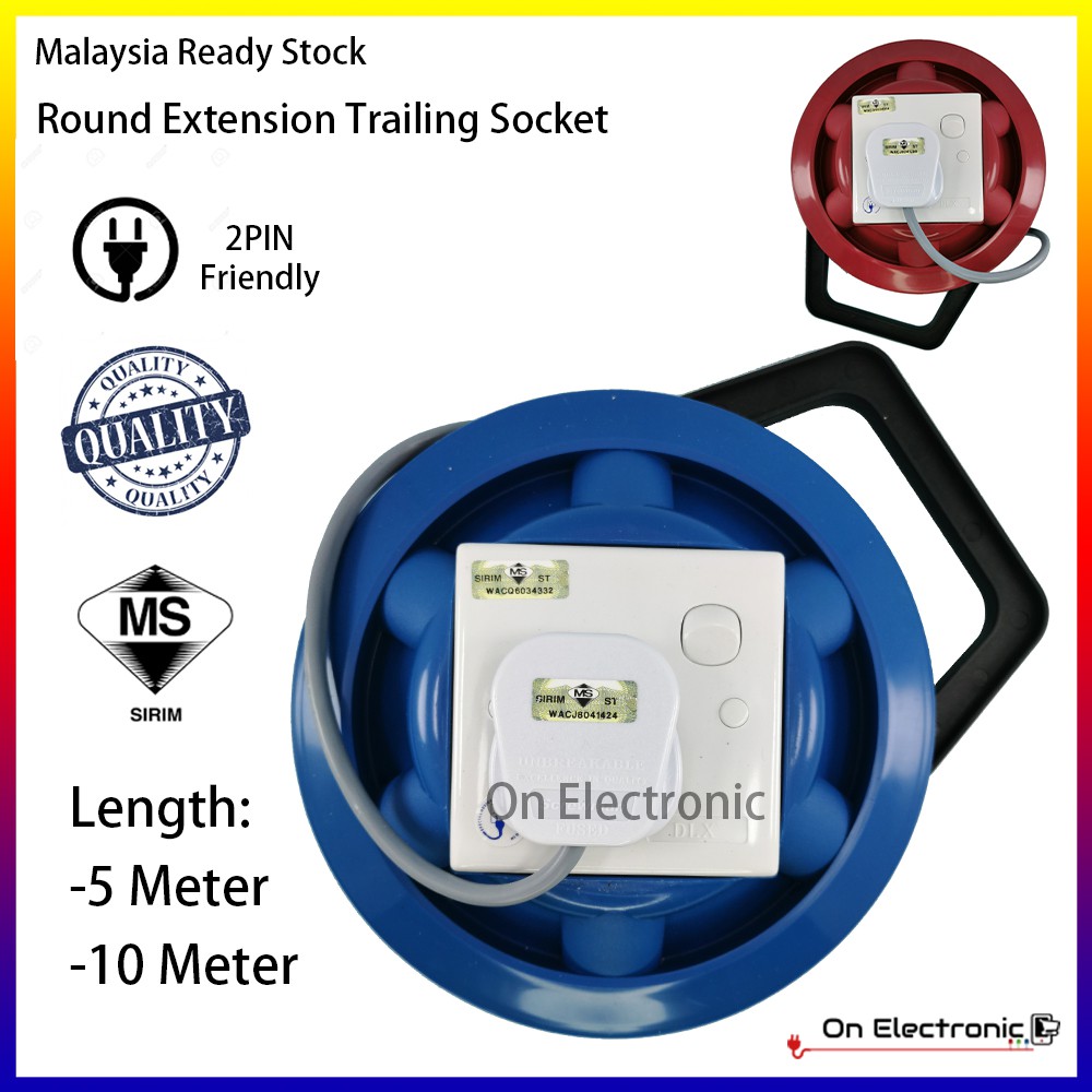 Round Extension Trailing Socket Plug Adapter 1 Way Neon Switch Socket 5 Meter/ 10 Meter Penyambung Wayar Bulat with SIRI