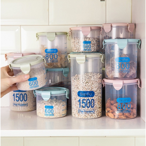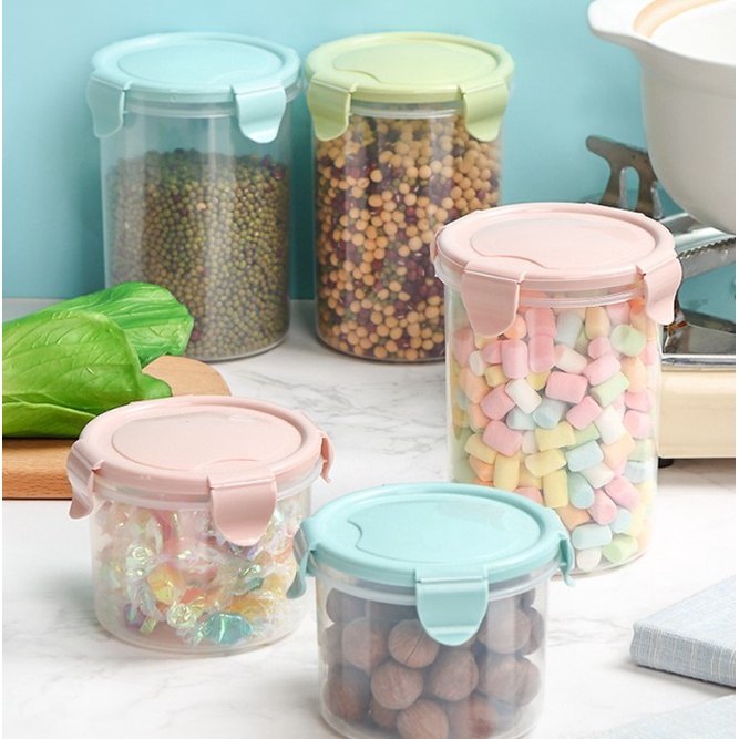 Round Food Storage Container With locked Lid/ Stackable Sealed Kitchen & Pantry Organizer Transparent Box Plastic