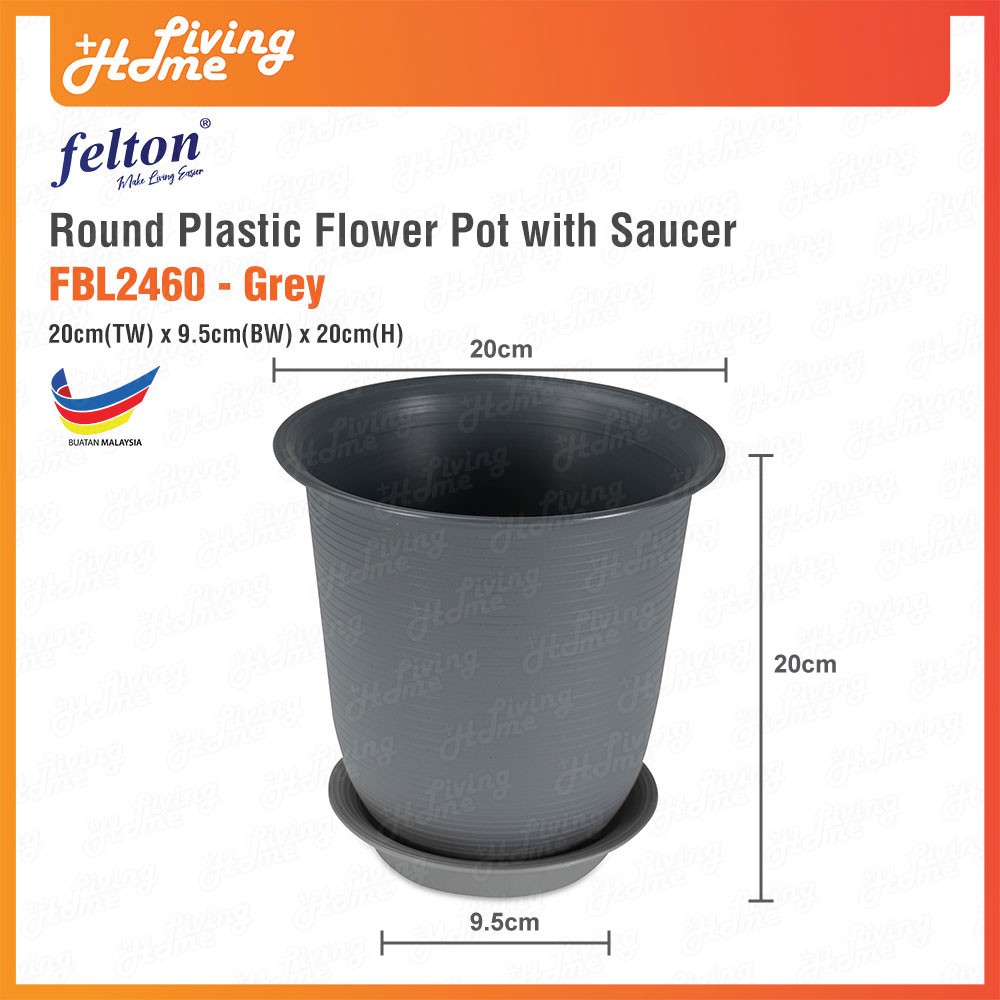 Round High Plastic Flower Pot & Saucer Tray Pasu Bunga Plastik Tinggi Dan Pelapik Felton FBL2460