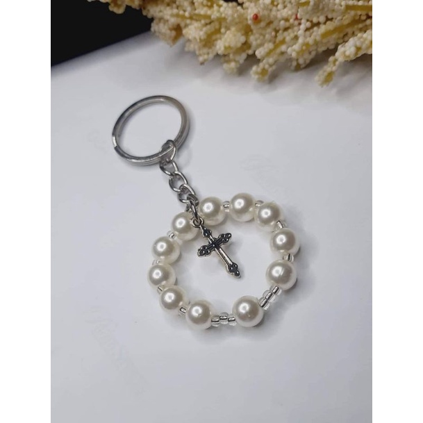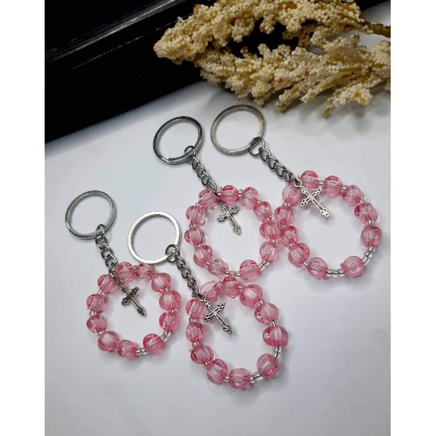 Round Mini Rosary keychain giveaways/souviner/baptismal
