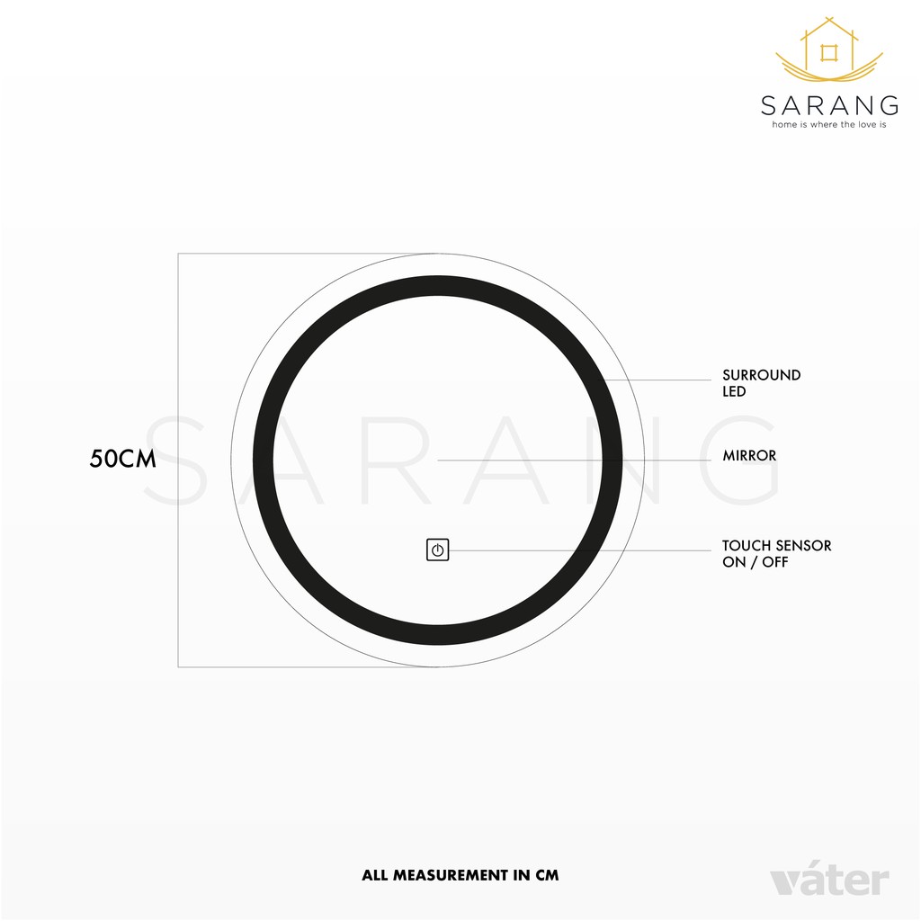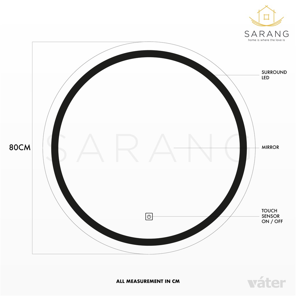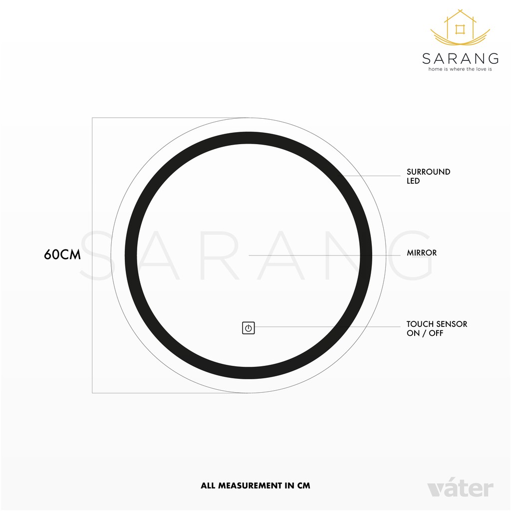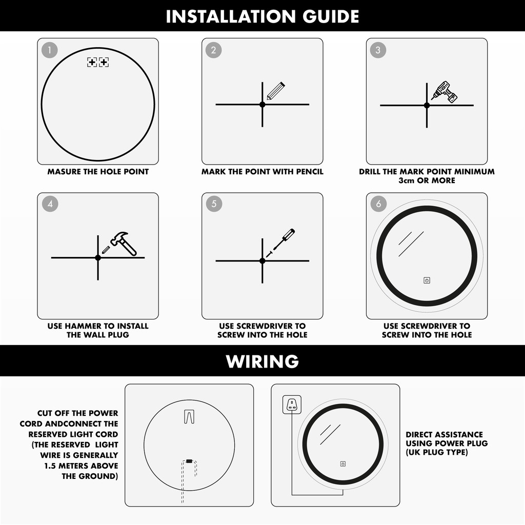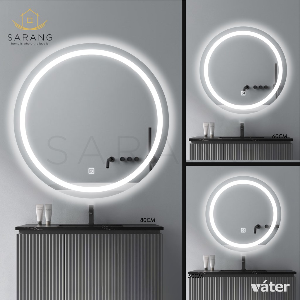 Round Mirror LED Light with Touch Sensor Decorative Wall Mounted Frameless Mirror ( Size 50cm 60cm and 80cm )