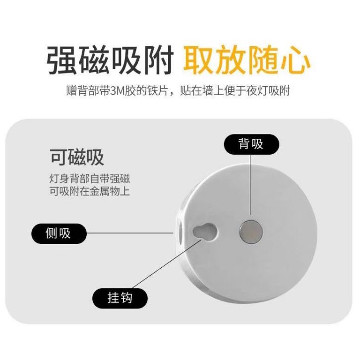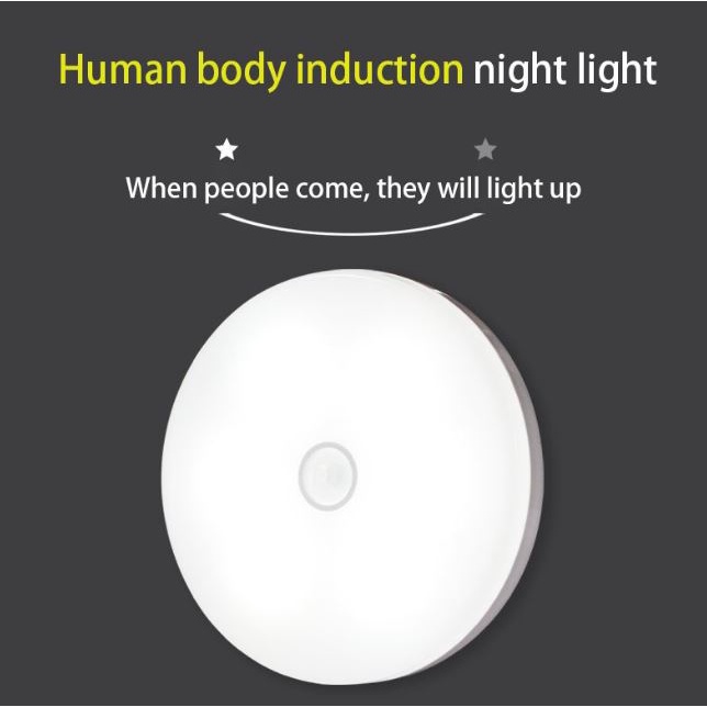 Round Motion Sensor Light LED Night Rechargeable Battery Powered Closet Bathroom Stairs Magnet DIY Lampu Sensor Gerakan