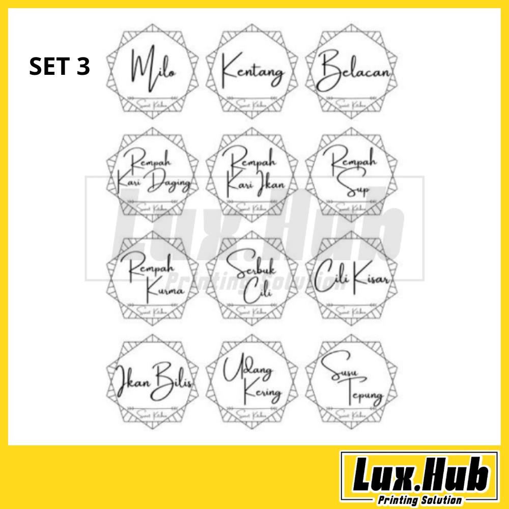 Round Sticker Label for Kitchen & Home | Transparent & Waterproof Stiker Dapur | Glass Jar Labelling Home Deco