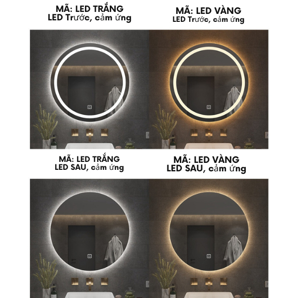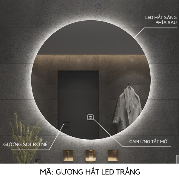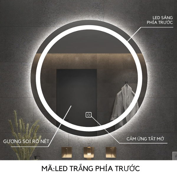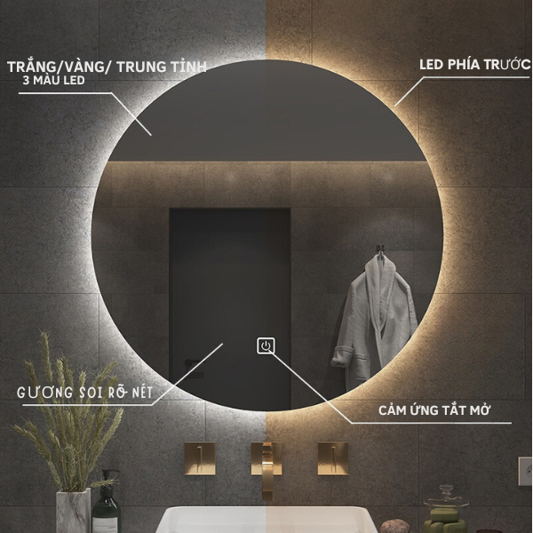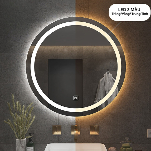 Round Wall Mirror with LED Light, Dressing Table Mirror, Bathroom, High Quality On/Off Touch Button
