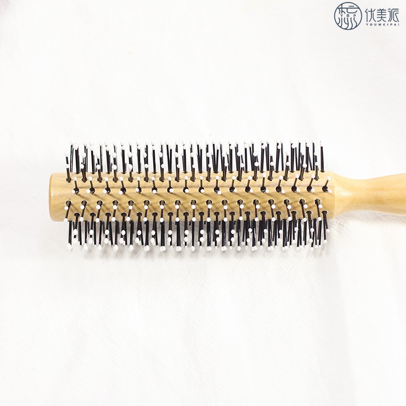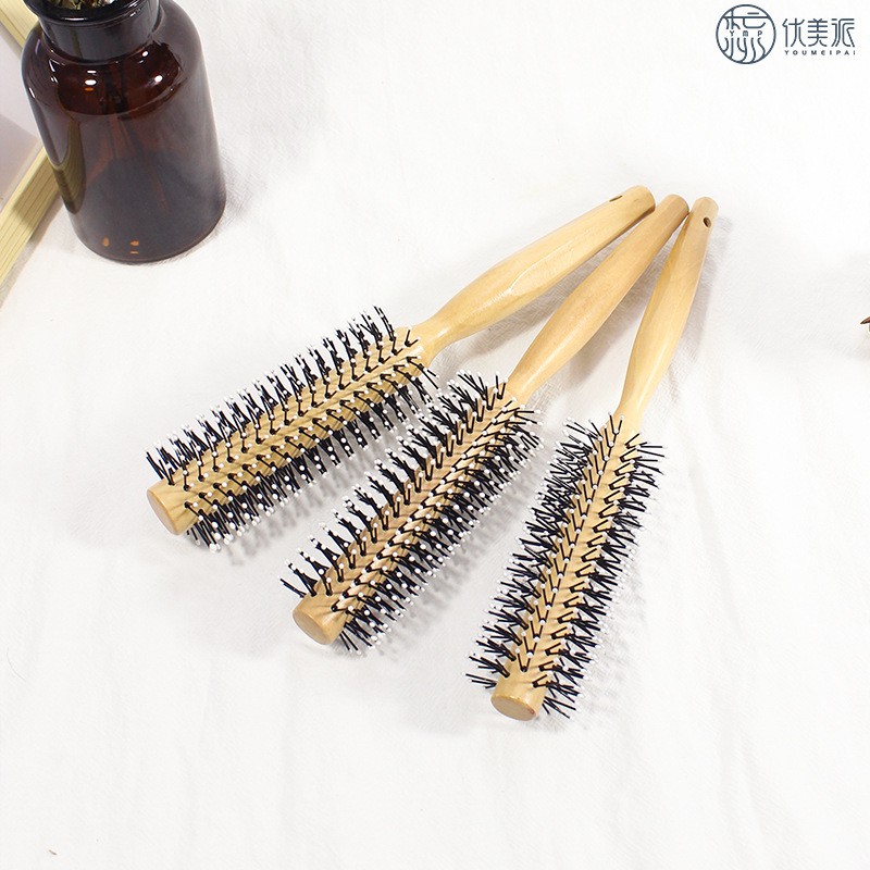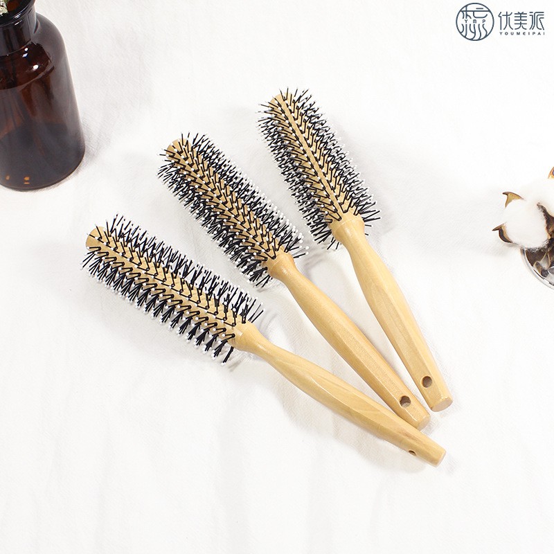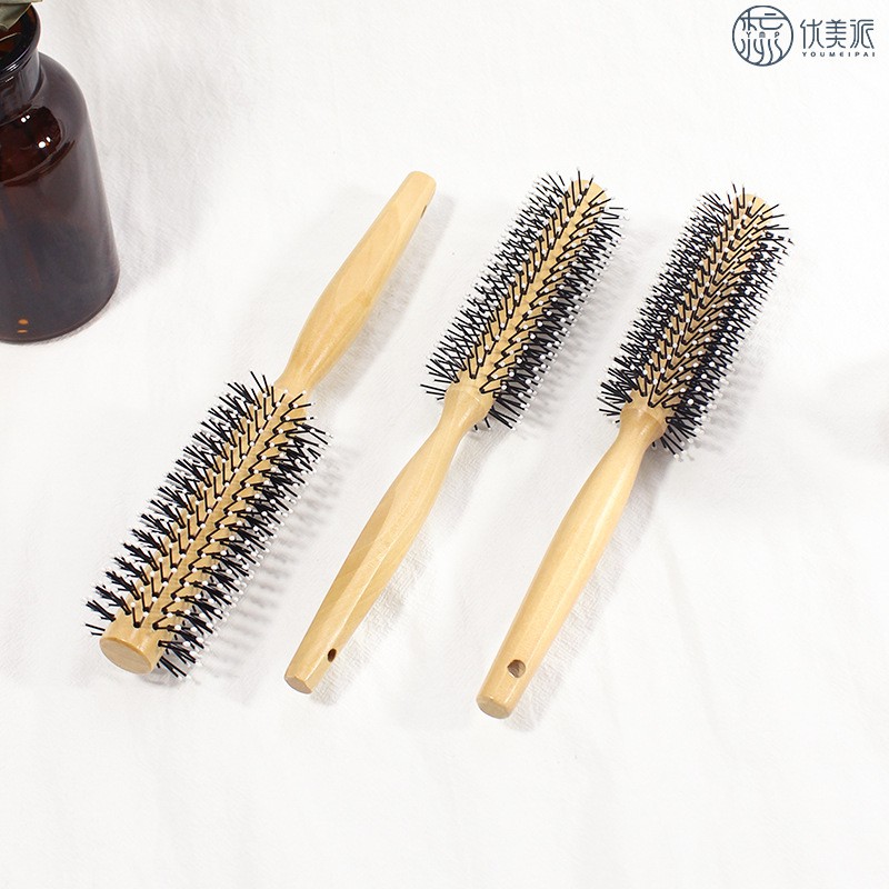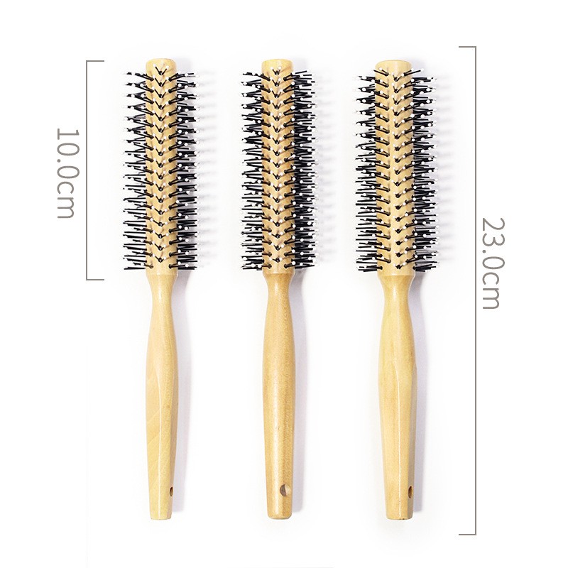 Round comb for styling men's hair - Wooden handle hair dryer
