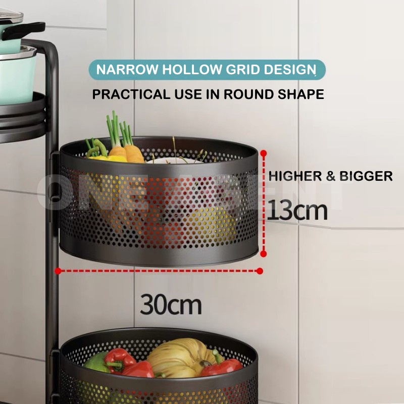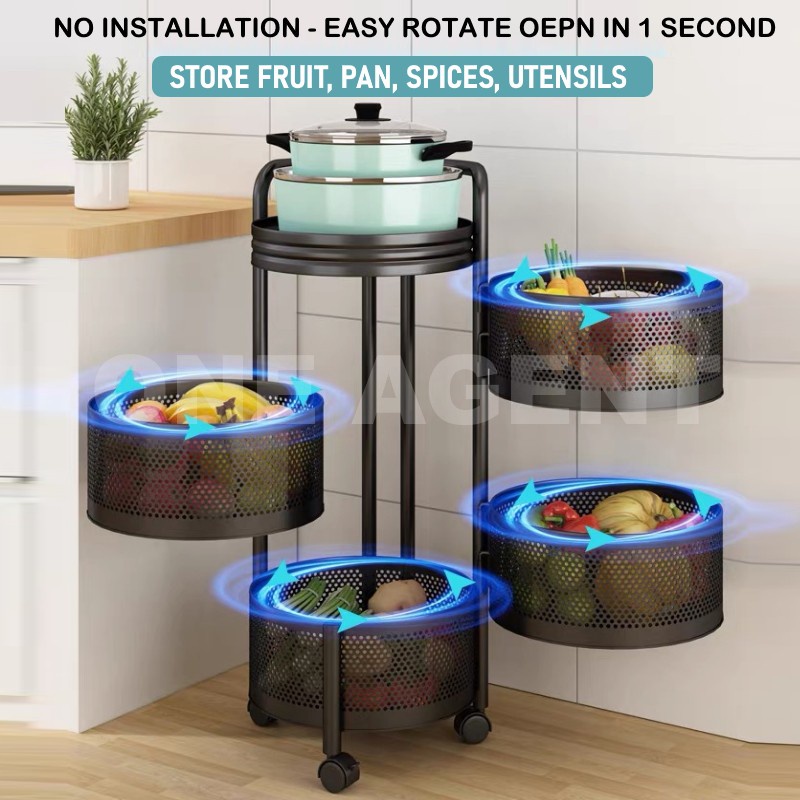 Round fruits storage basket 360 degree rotation vegetable storage rack kitchen floor storage rack