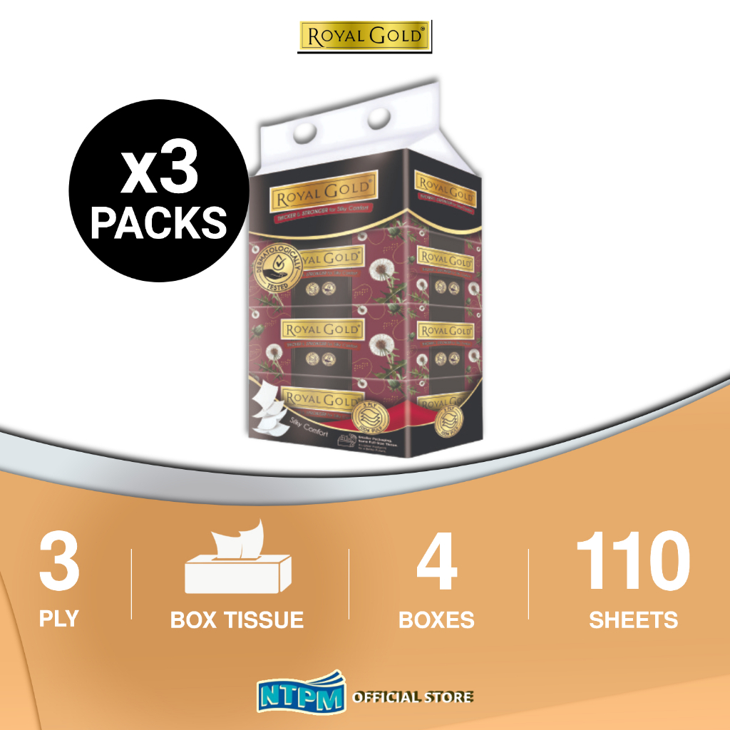 Royal Gold Luxurious (White) Box Facial Tissue 3PLY (110's x 4) x 3 Packets