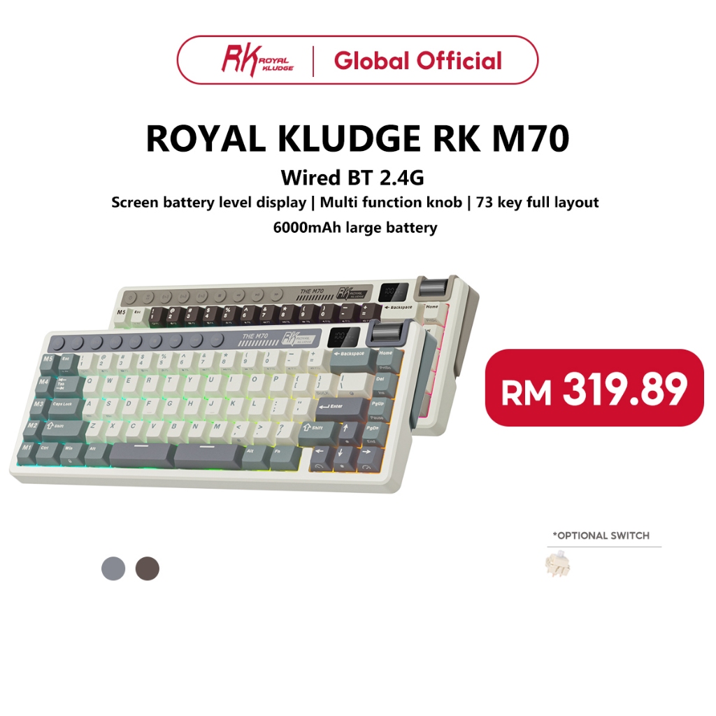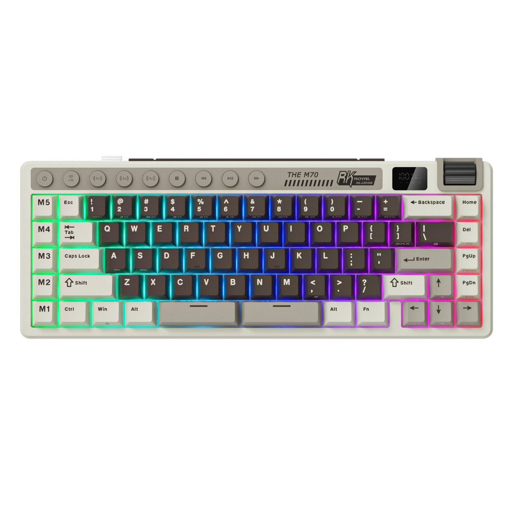 Royal Kludge RK M70 Mocha Grey 73 Key Tri-Mode Wireless With TFT Screen Gasket Mechanical Keyboard