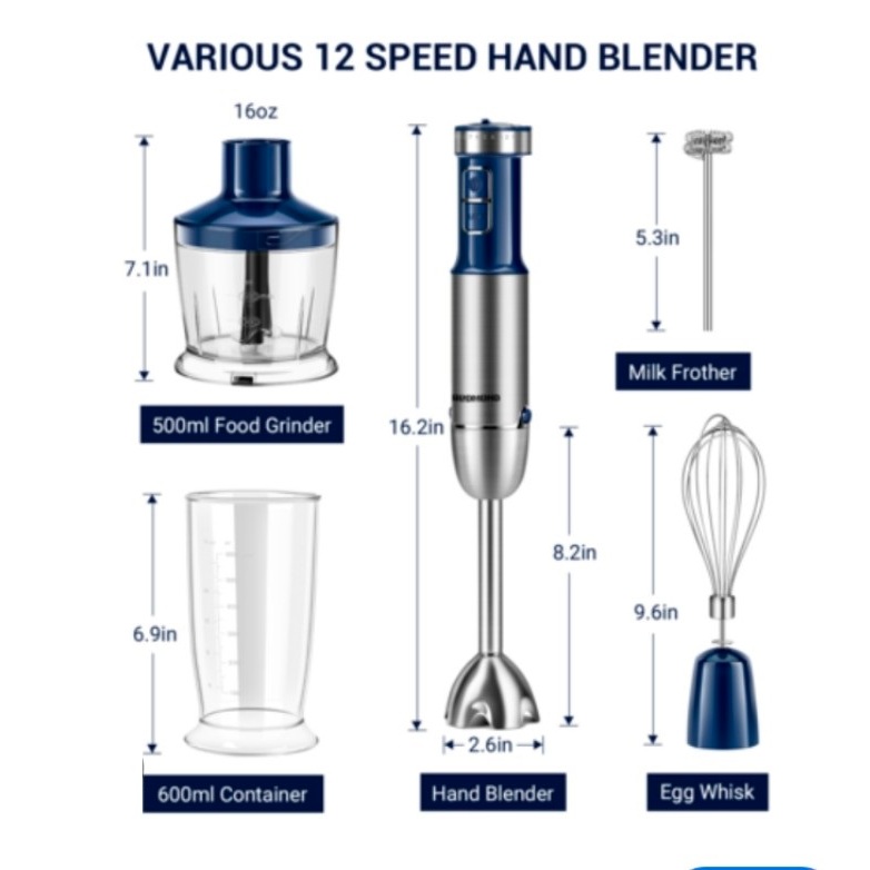Royal Master 1200w Hand Blender professional Hand Blender 4in1 Hager Set Multifunction