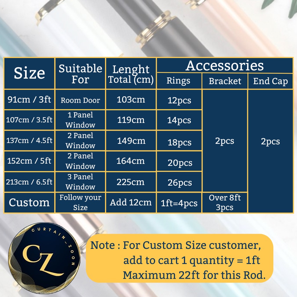 Royal Rod Langsir/Kayu Langsir Aluminium Alloy Single ( Royal Curtain Rod Single Complete Set )