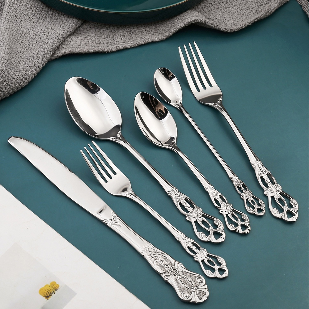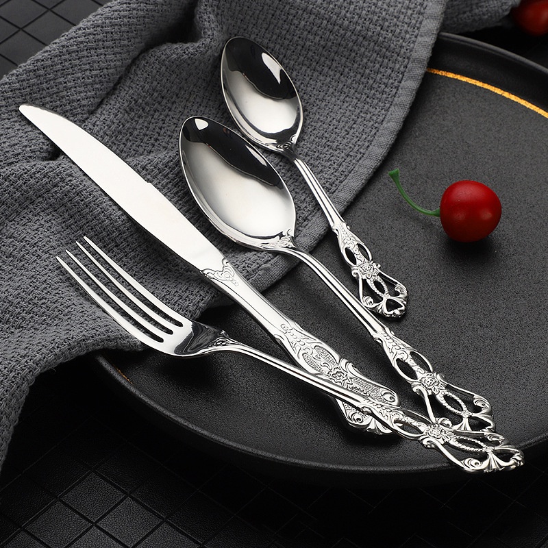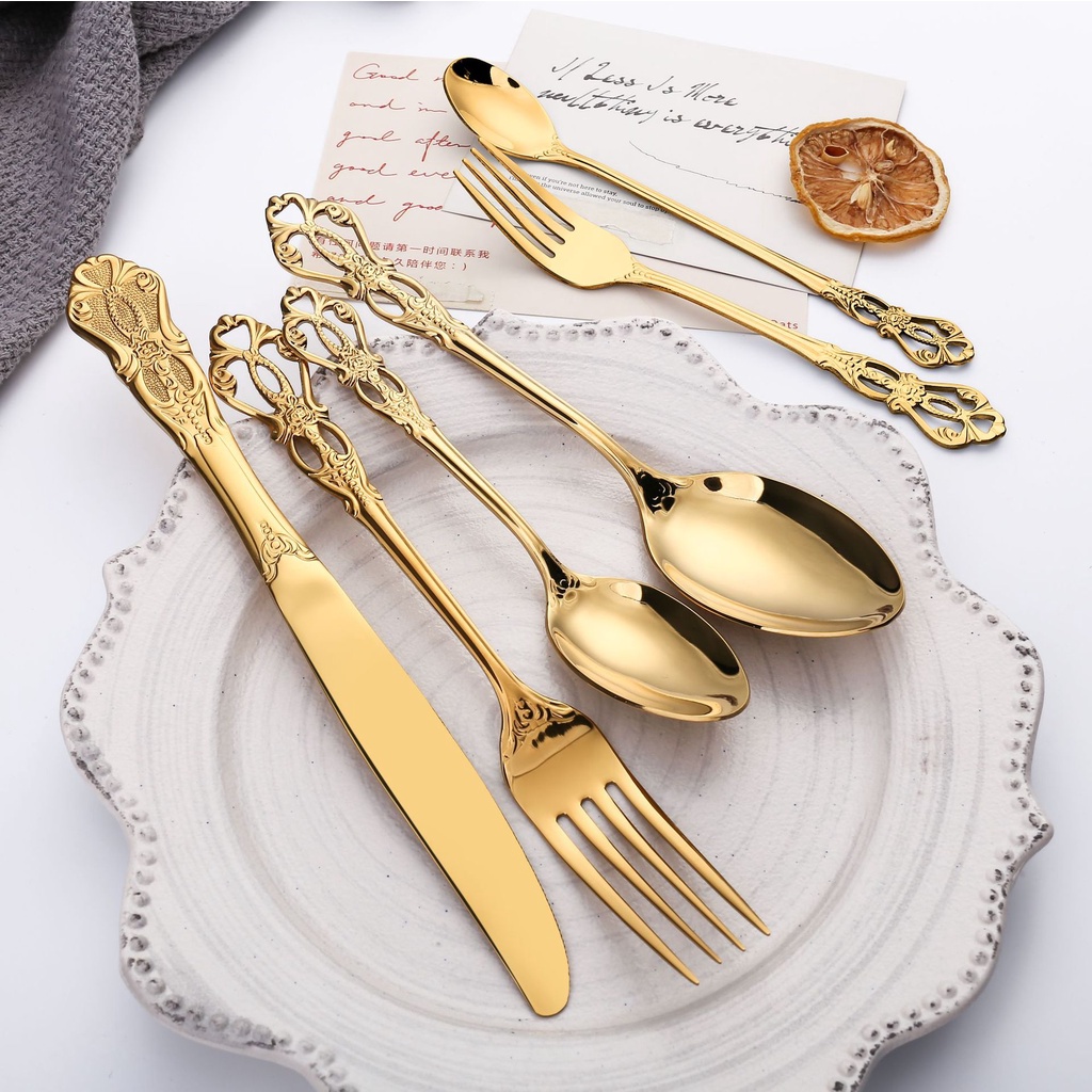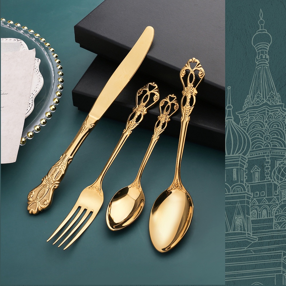 Royal Style Stainless Steel Luxury Dinner Spoon and Fork Ice Spoon Steak Knife Gold Plated Cutlery For Hotel Restaurant