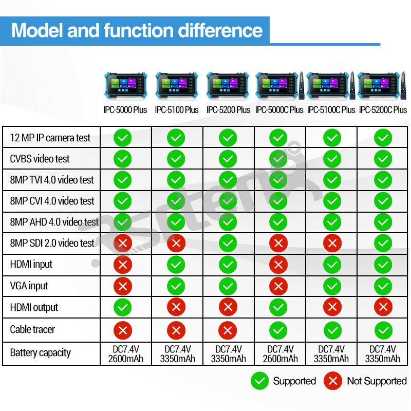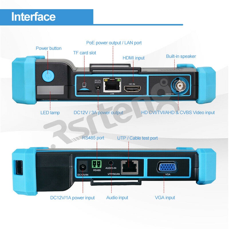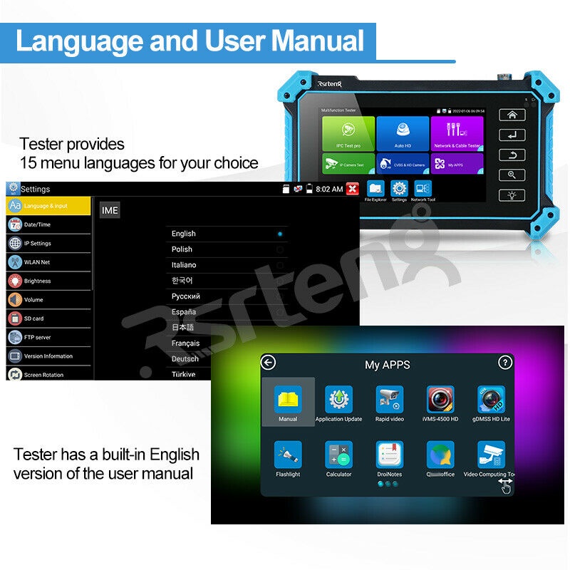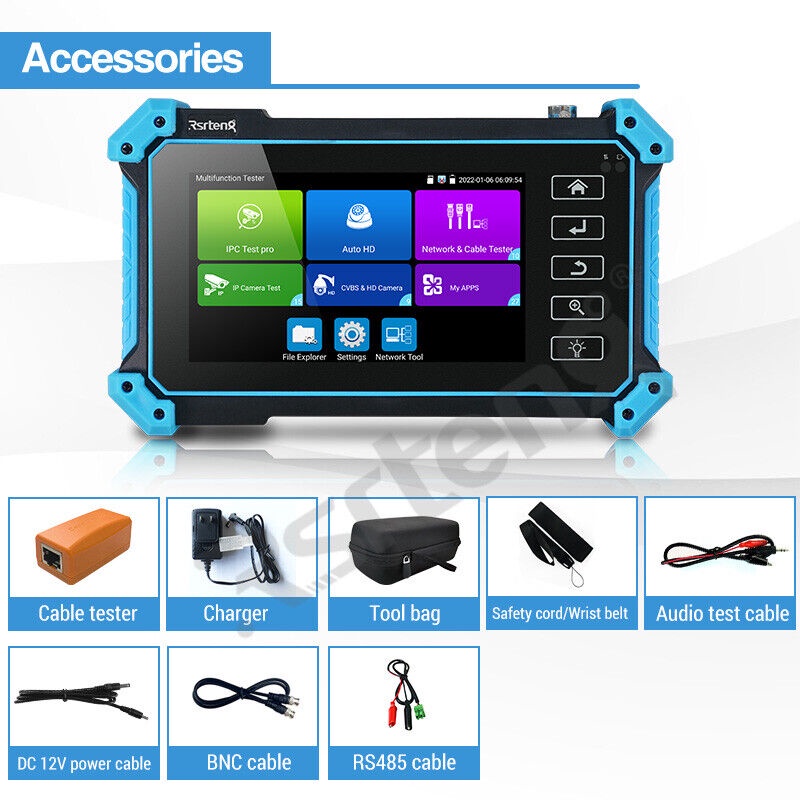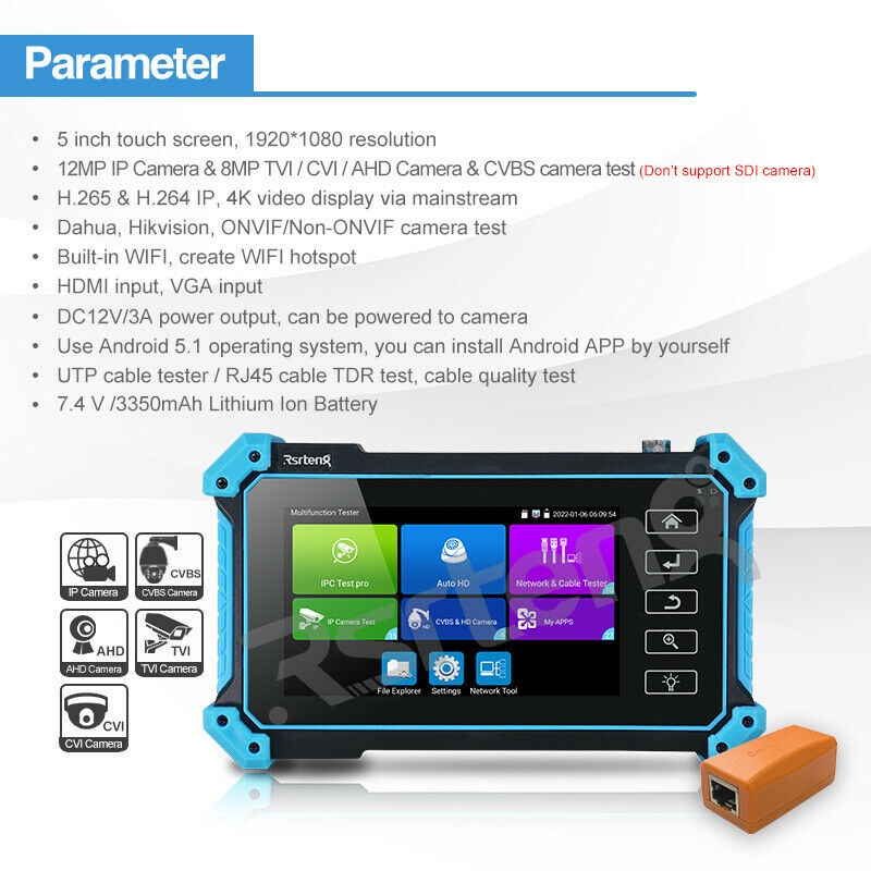Rsrteng IP Camera Tester IPC-5100 Plus 8MP AHD CVI TVI CVBS IP Camera Test 4K HD Display Video Monitor 5inch IPS Touch Screen IPC Tester Support POE PTZ WiFi RS485 HDMI