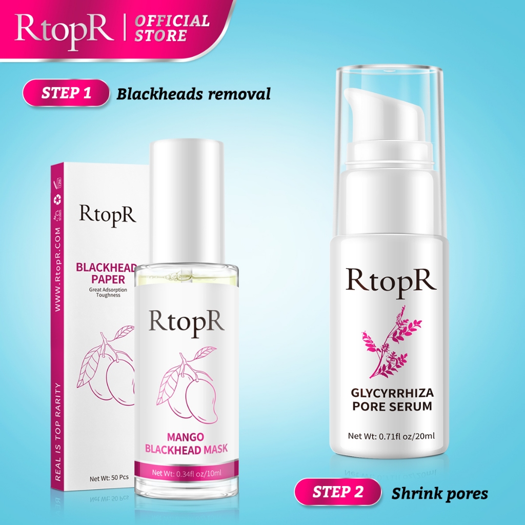 RtopR Mango Blackhead Remover Mask Deep Cleans Pores Shrink Pores Moisturizing Serum Acne Treatment Serum Skin Care Peeling Off Nose Mask+paper