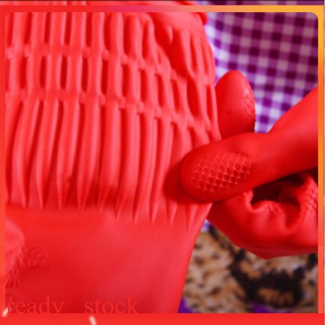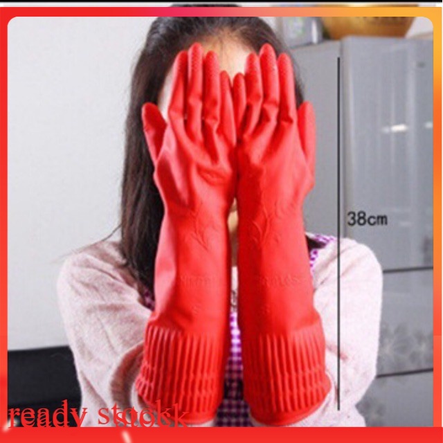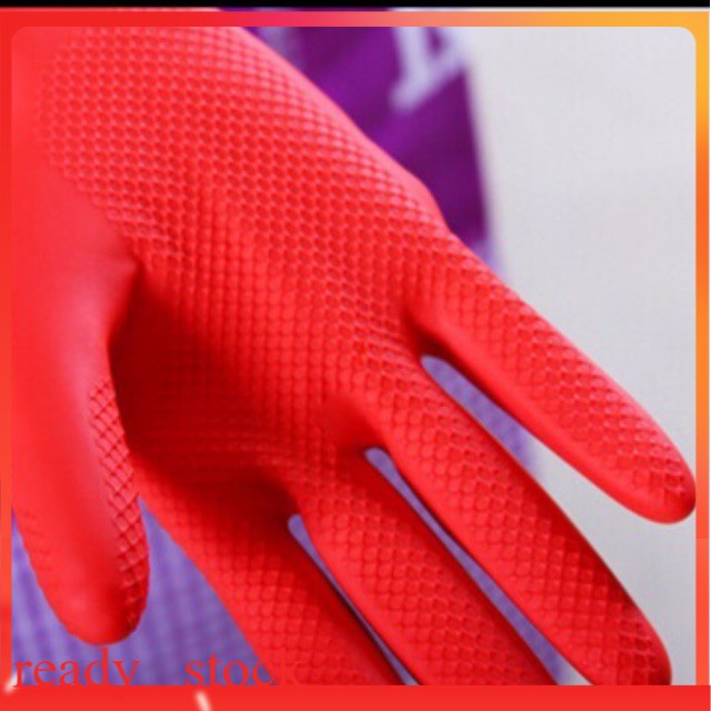 Sarung Tangan Getah Tebal Anti-Slip Waterproof Basuh Pinggan Rubber Gloves Dapur 洗碗清洁手套
