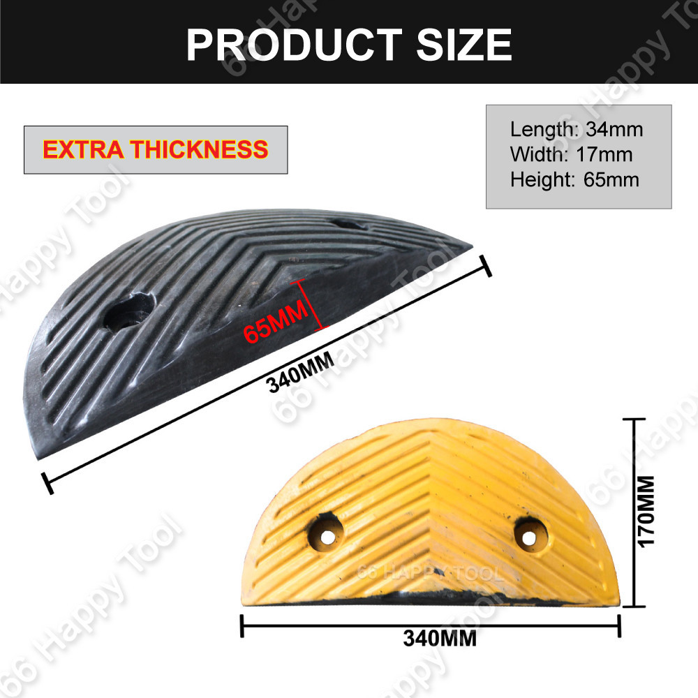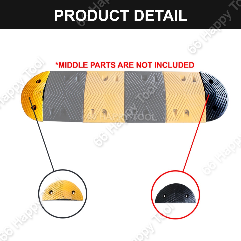 Rubber Speed Bump 2Pcs (1 Pair) End Cap Ready Stock Black & Yellow For Traffic Calming Rubble Speed Hump Safety Vehicle
