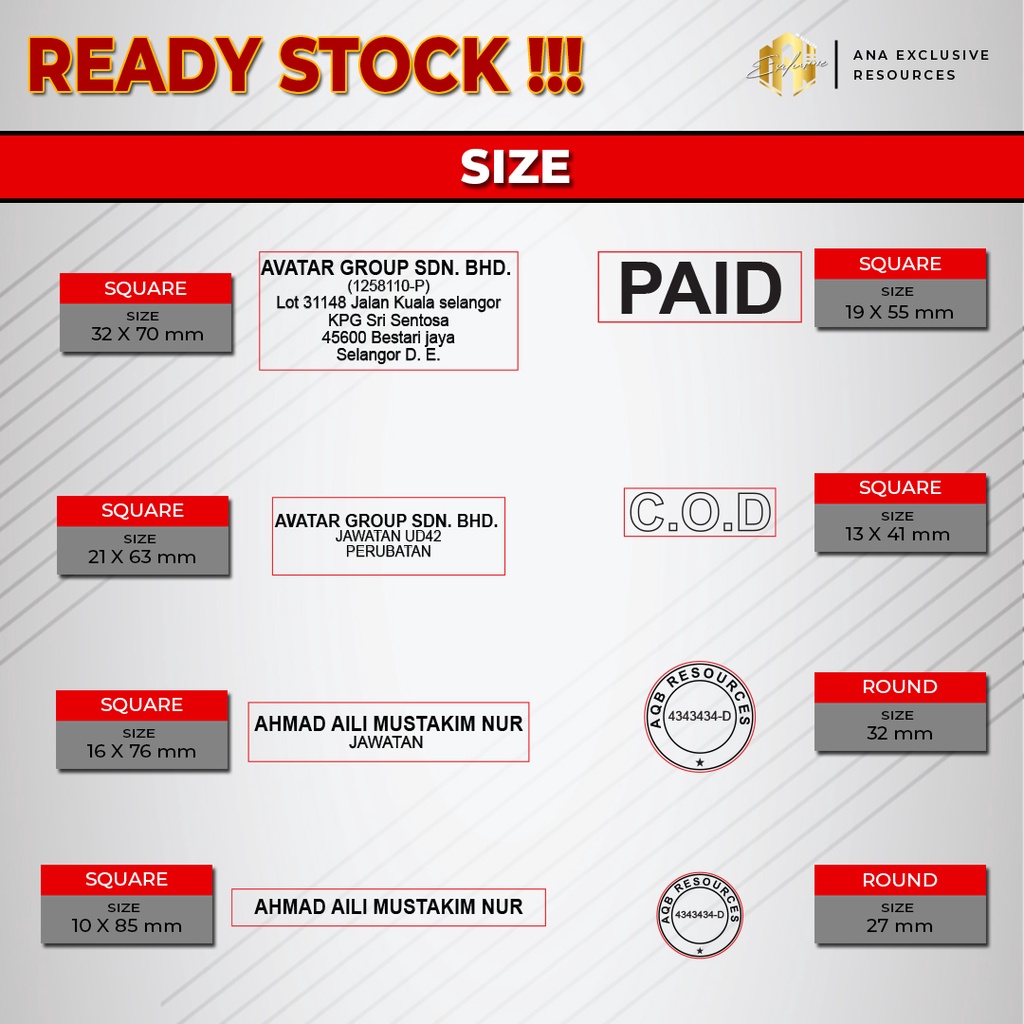 Rubber Stamp Normal / Cop Getah Biasa *SAME DAY DELIVERY* (READY STOCK)