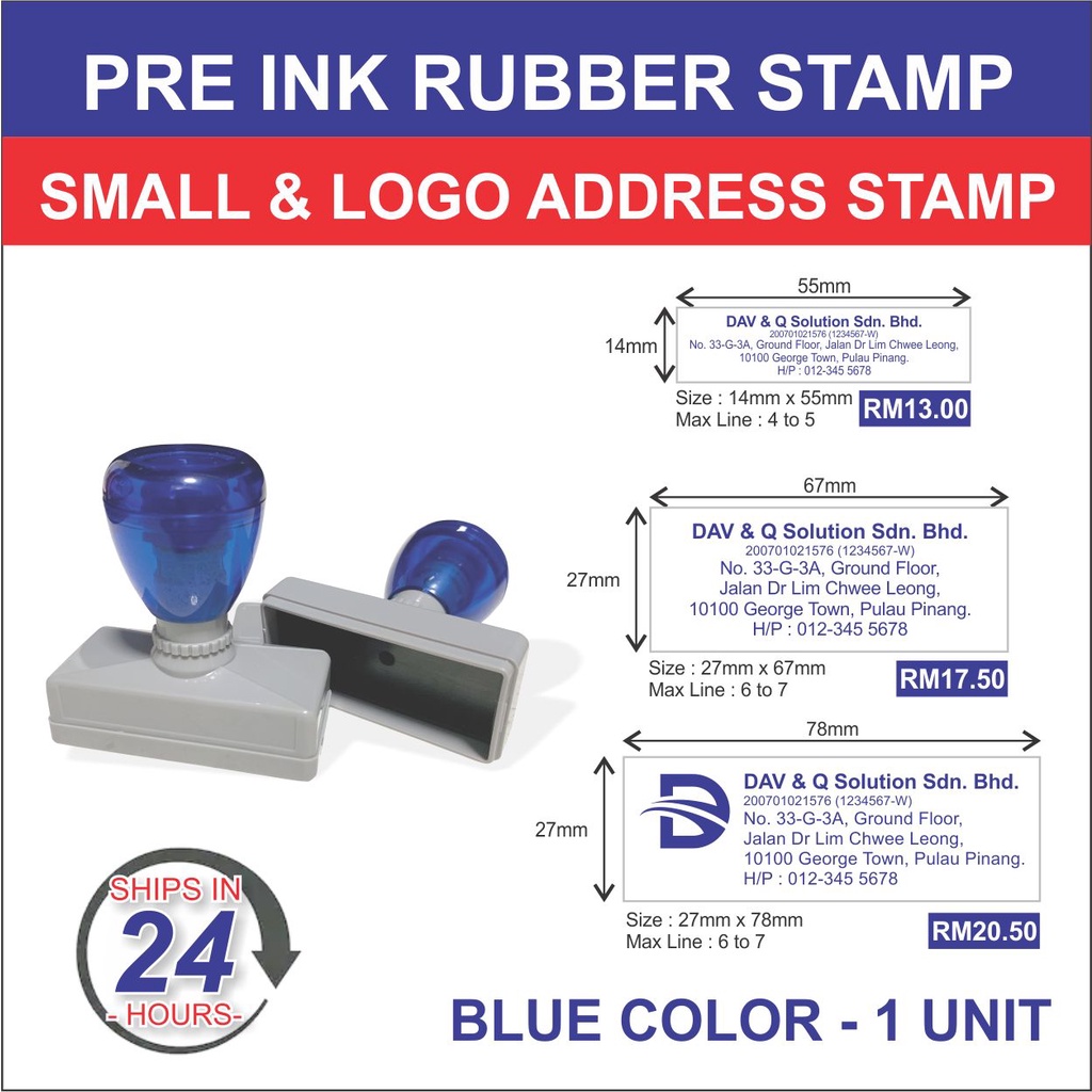 Rubber Stamp / Self Ink Rubber Stamp / Pre Ink Rubber Stamp / Company Address Chop (CUSTOM MADE)