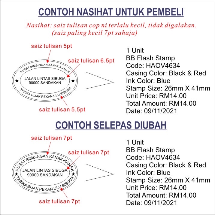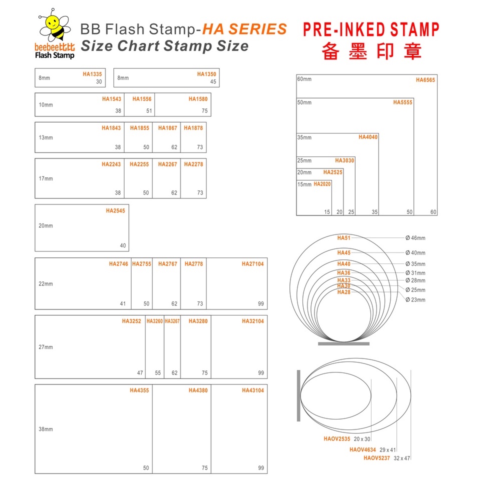 Rubber stamp Bujur BB flash stamp Oval HA-RB cop sedia ada ink per-inked stamp cop custom-made