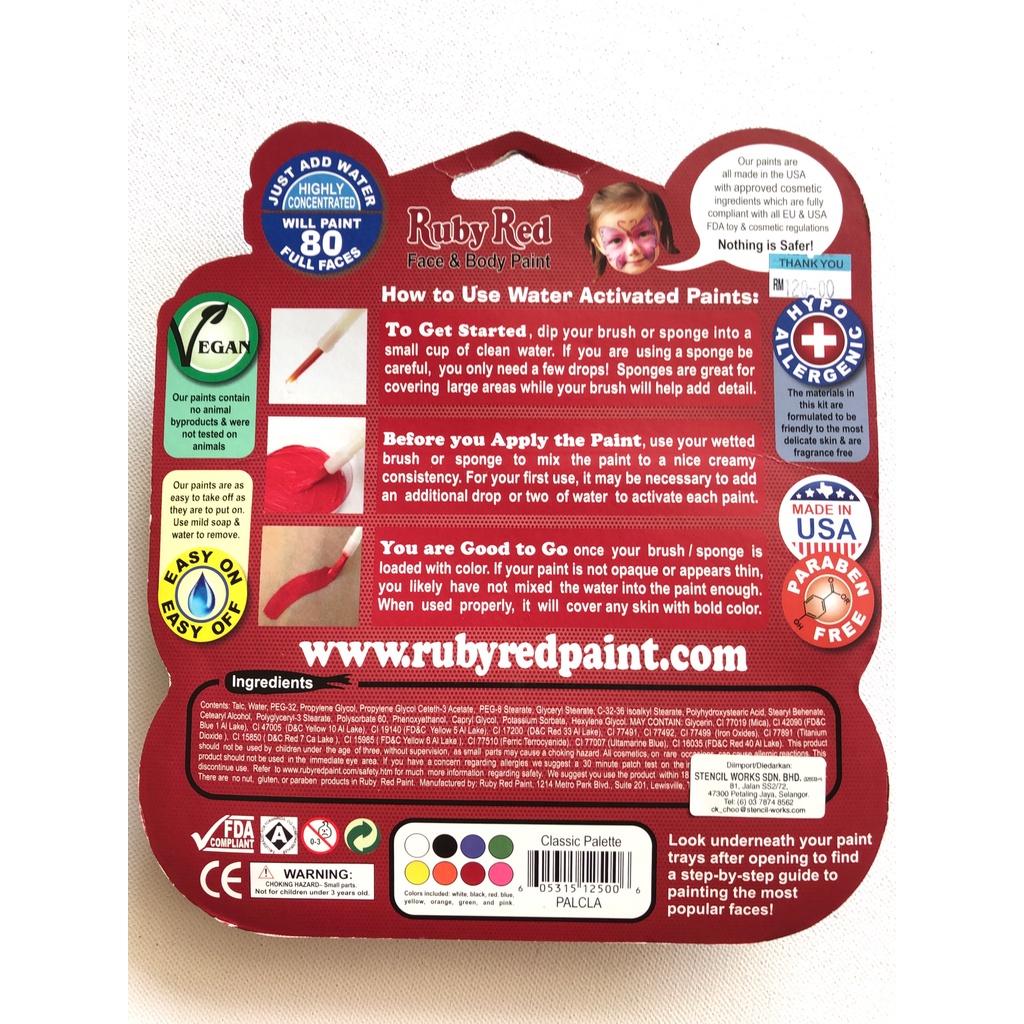 Ruby Red Face & Body Paint 8 Classic Colors Made in USA