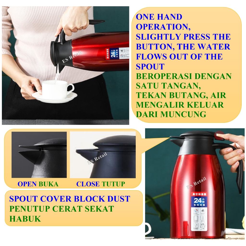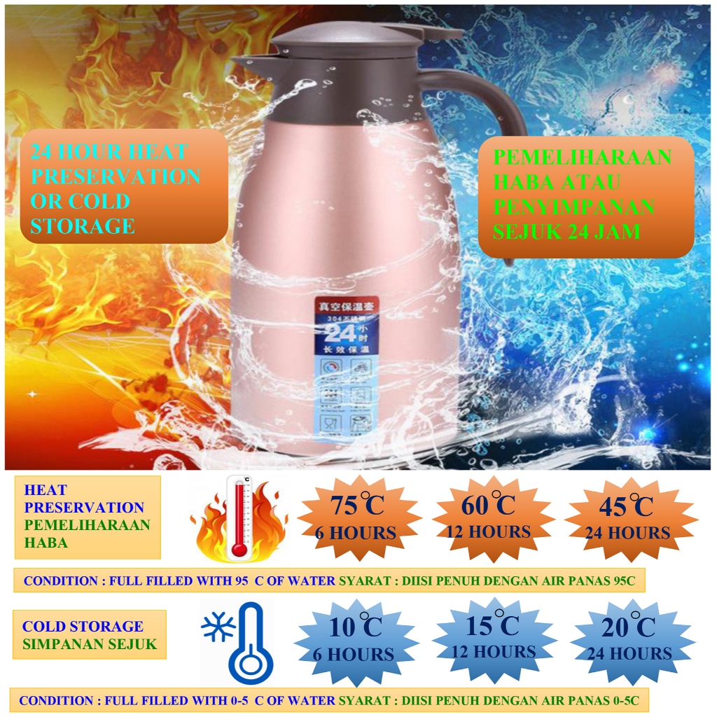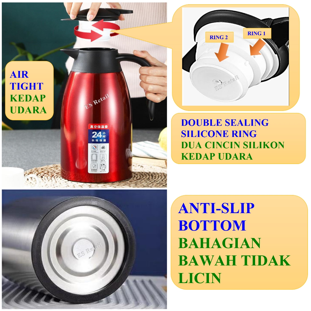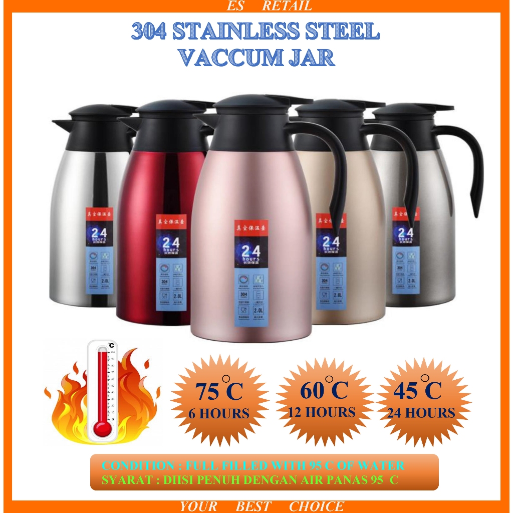 2L 304 Stainless steel vacuum jug 2 liter vacuum pot Vacuum flask Kendi vakum keluli tanpa karat 304 cerek vakum