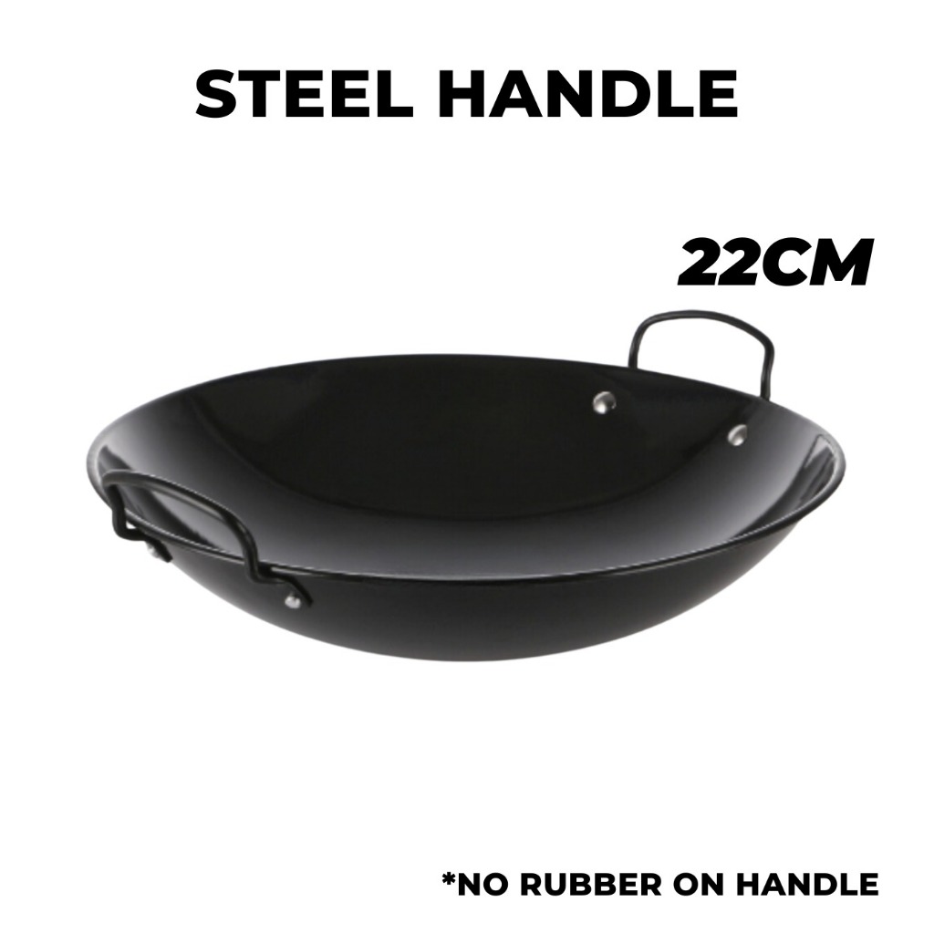 🍒CHERRY🍒 Kuali Hitam Original Ridged Iron Wok Enamel Wok Kuali Hitam Masak Iron Wok Double Handle Enamel Wok