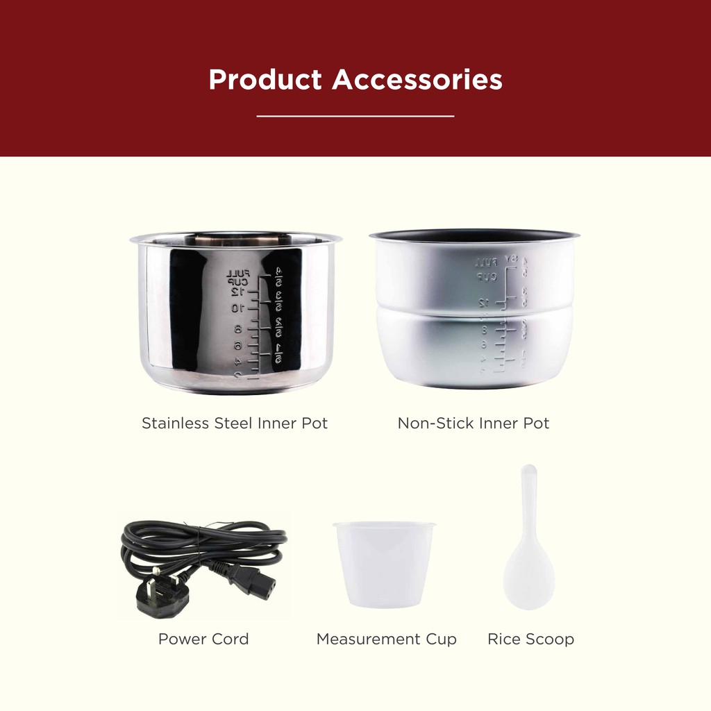 Russell Taylors Dual Pot Pressure Cooker Rice Cooker 2 Pots + Steam (6L) PC-60