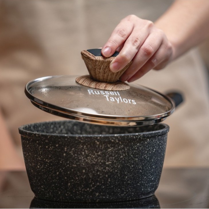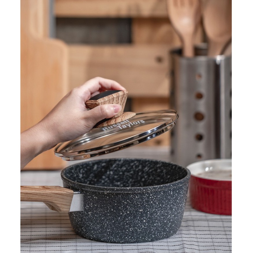 Russell Taylors Non-Stick Marble Coated Sauce Pan with Lid - cooking pot, frying pan, sauce pan
