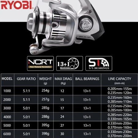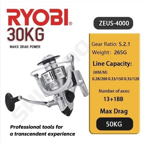 Ryobi Reel Reel Spinning Reel Pancing Fishing Reel Spinning 30kg 13+1BB All Metal Double Spool